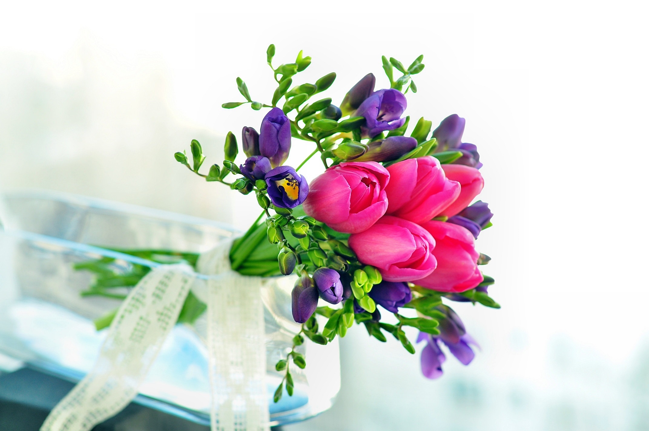 Edytor tapety: Tulipany, Frezje, Bukiet