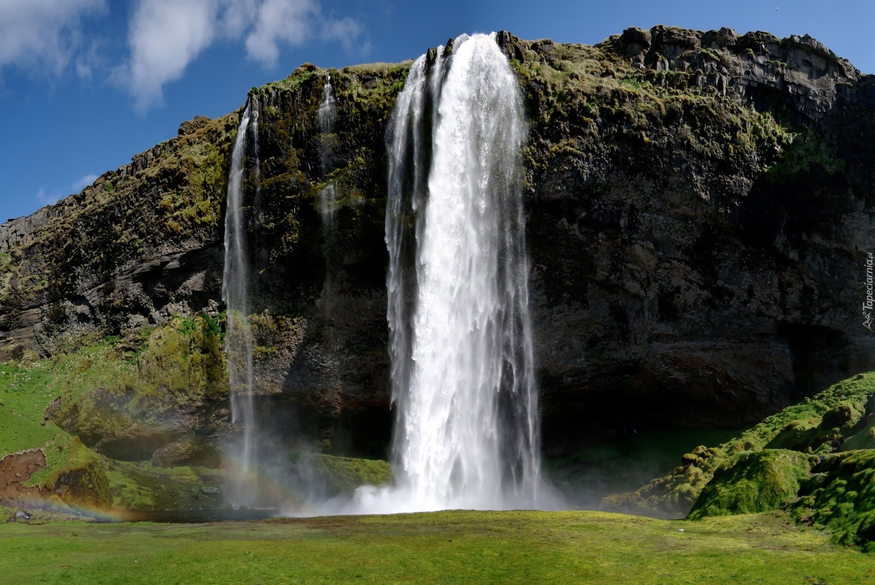 Edytor tapety: Wodospad, Woda, Skały, Trawa