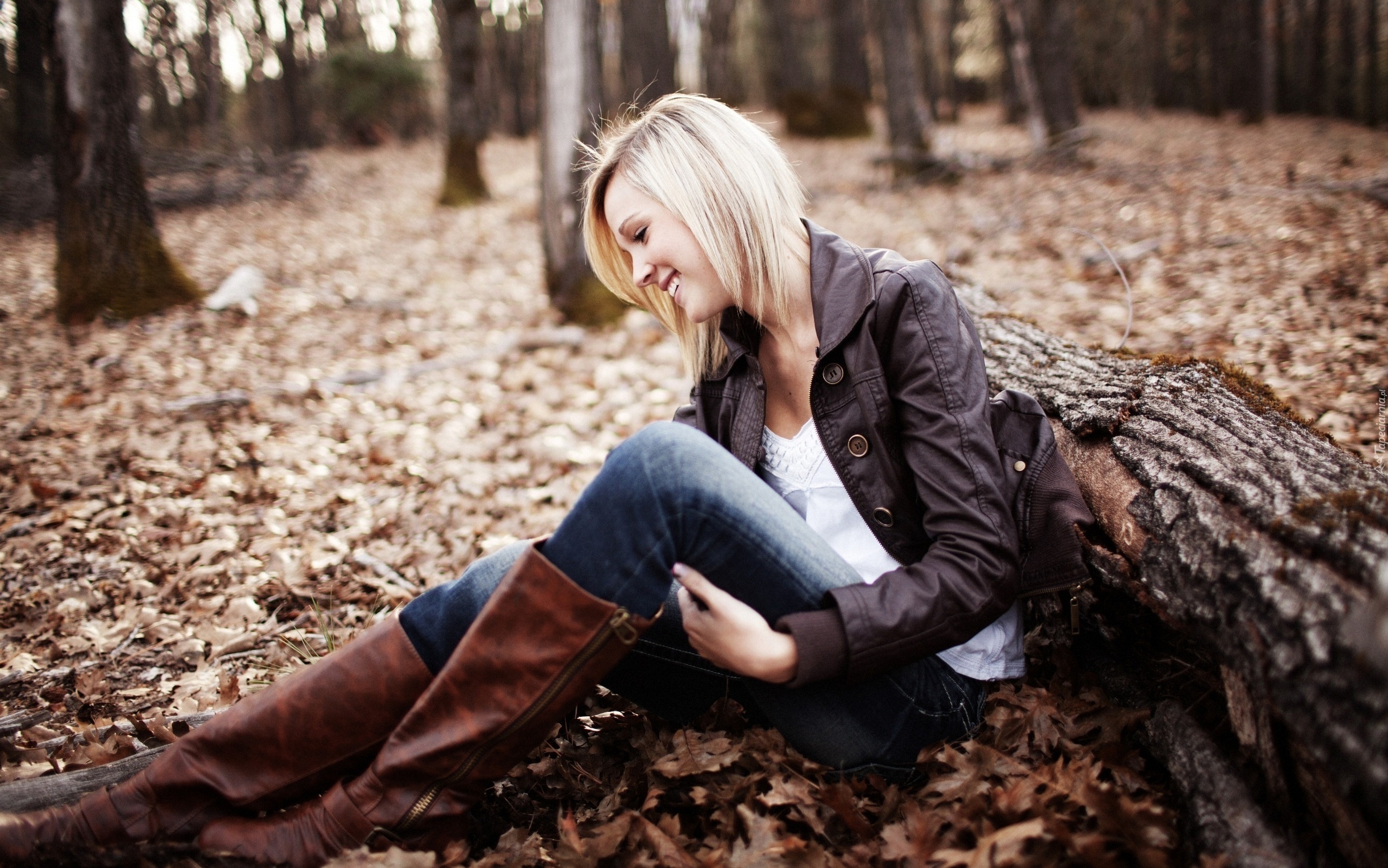 Edytor tapety: Blondynka, Liście, Jesień