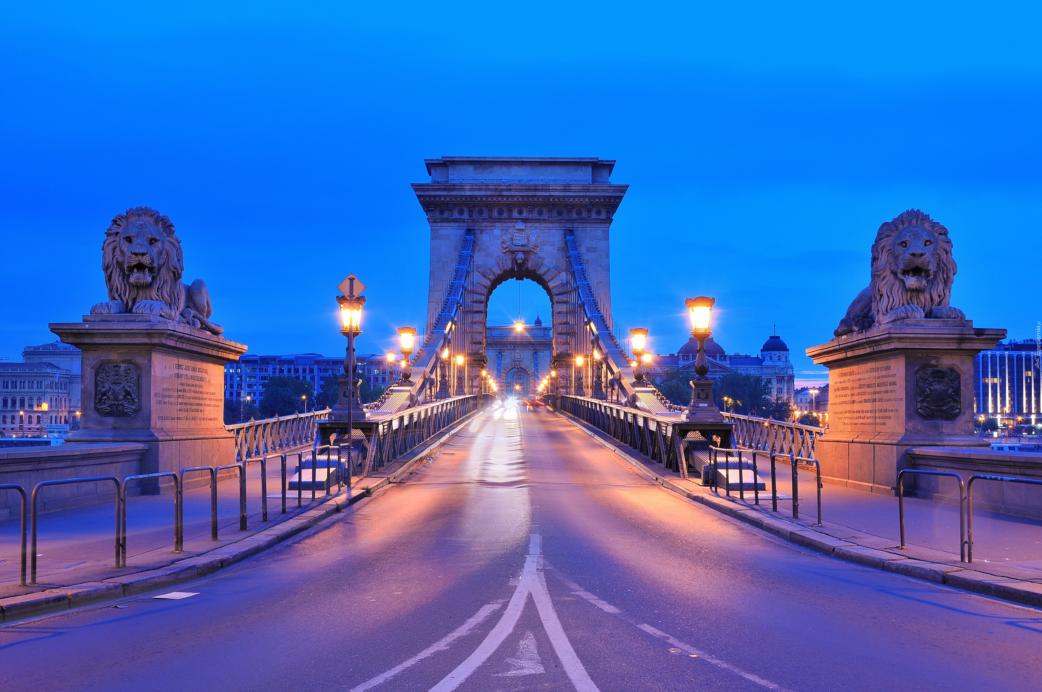 Edytor tapety: Węgry, Budapeszt, Most Łańcuchowy, Posągi, Lwy