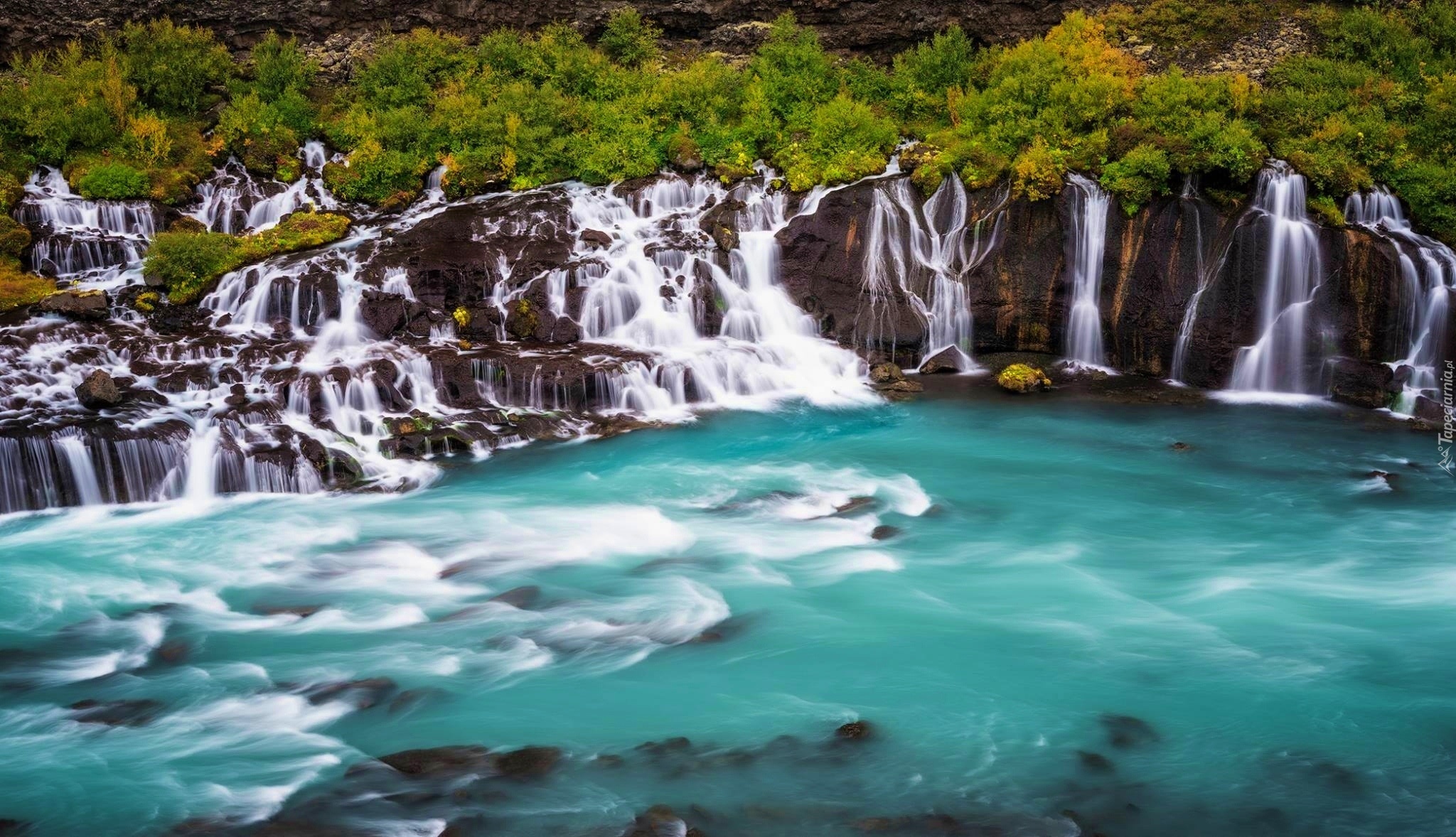 Edytor tapety: Kaskada, Skały, Rzeka, Zieleń