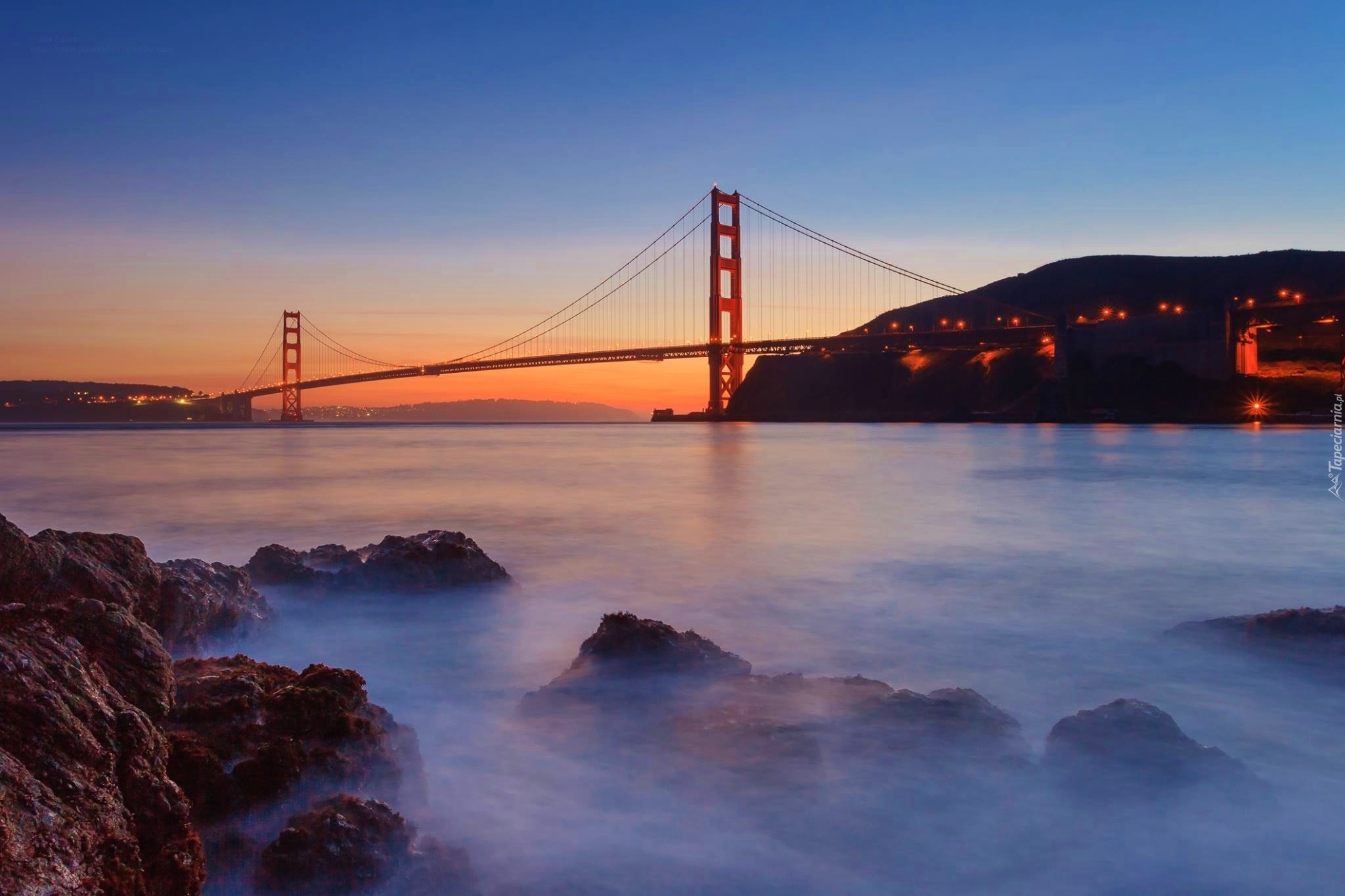 Edytor tapety: Rzeka, Zachód Słońca, Most Golden Gate