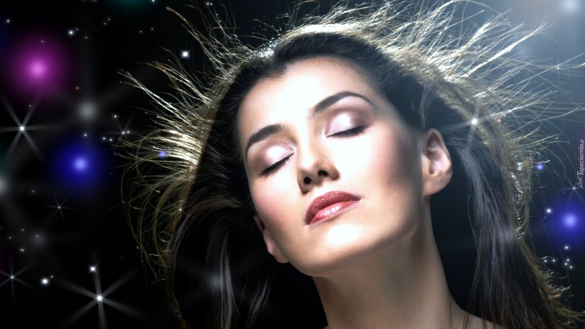 Edytor tapety: Kobieta, Rozwiane, Włosy, Makijaż