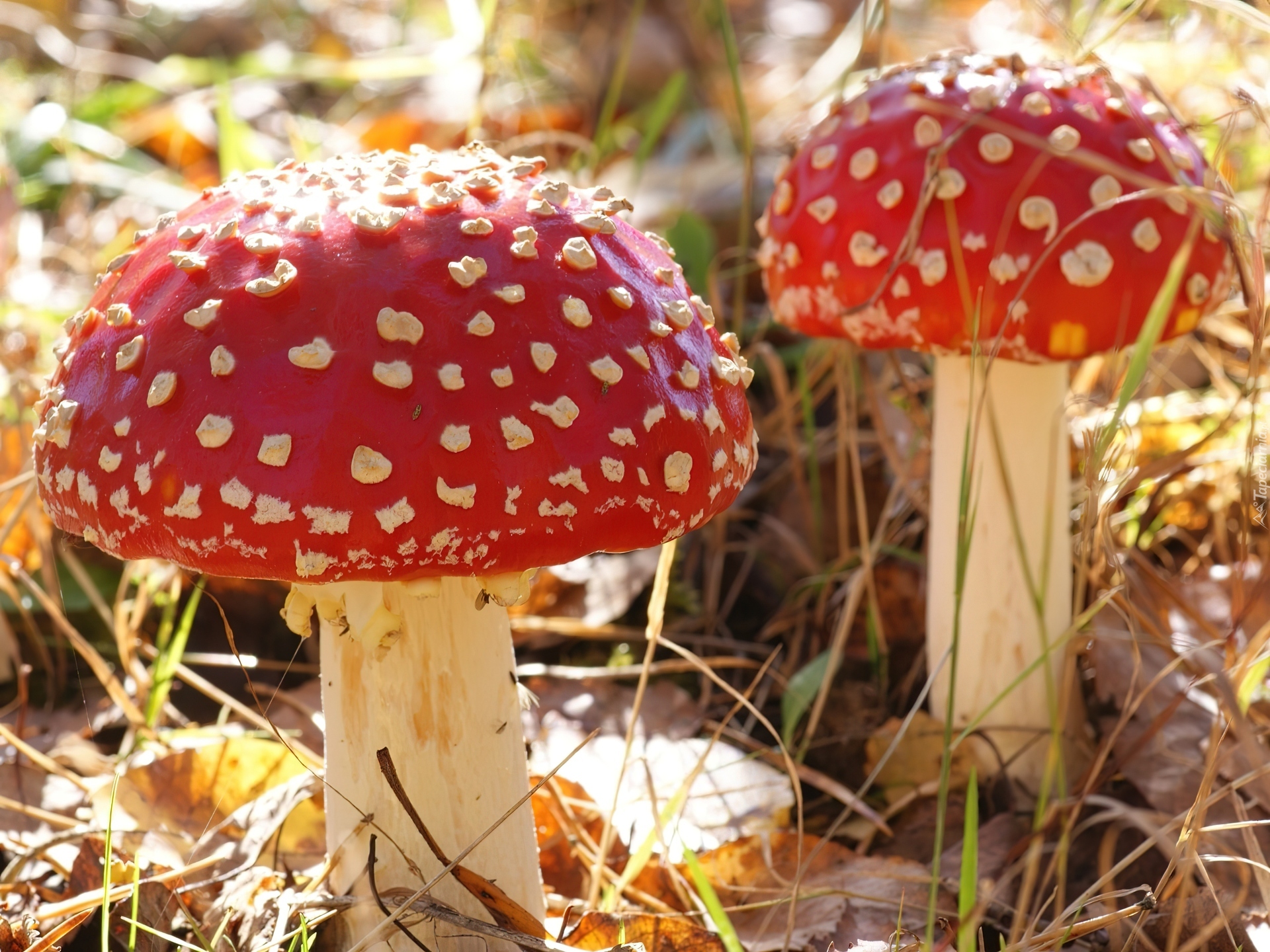 Edytor tapety: Grzyby, Muchomory, Sucha, Trawa