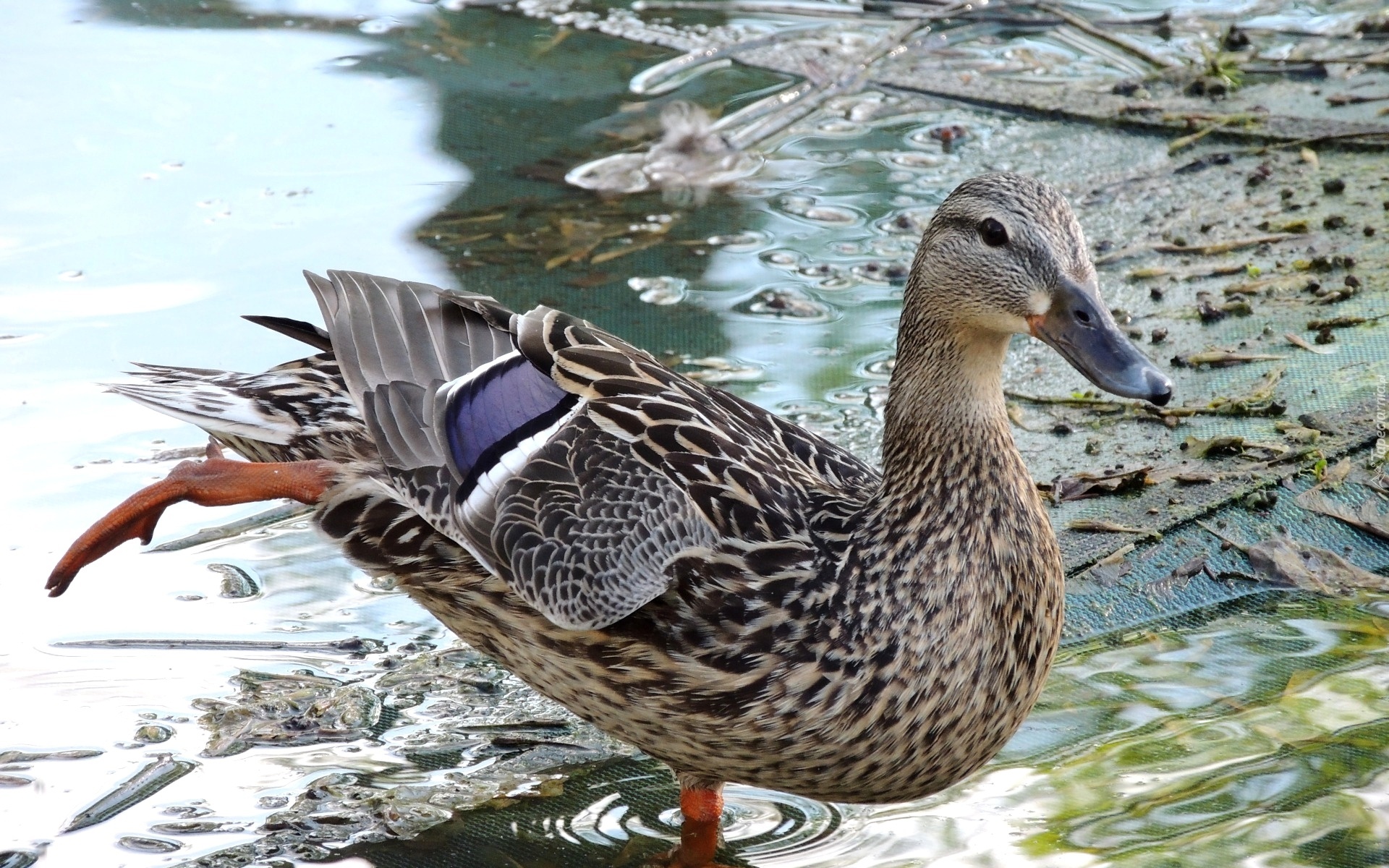 Edytor tapety: Kaczka, Woda, Uniesiona, Noga