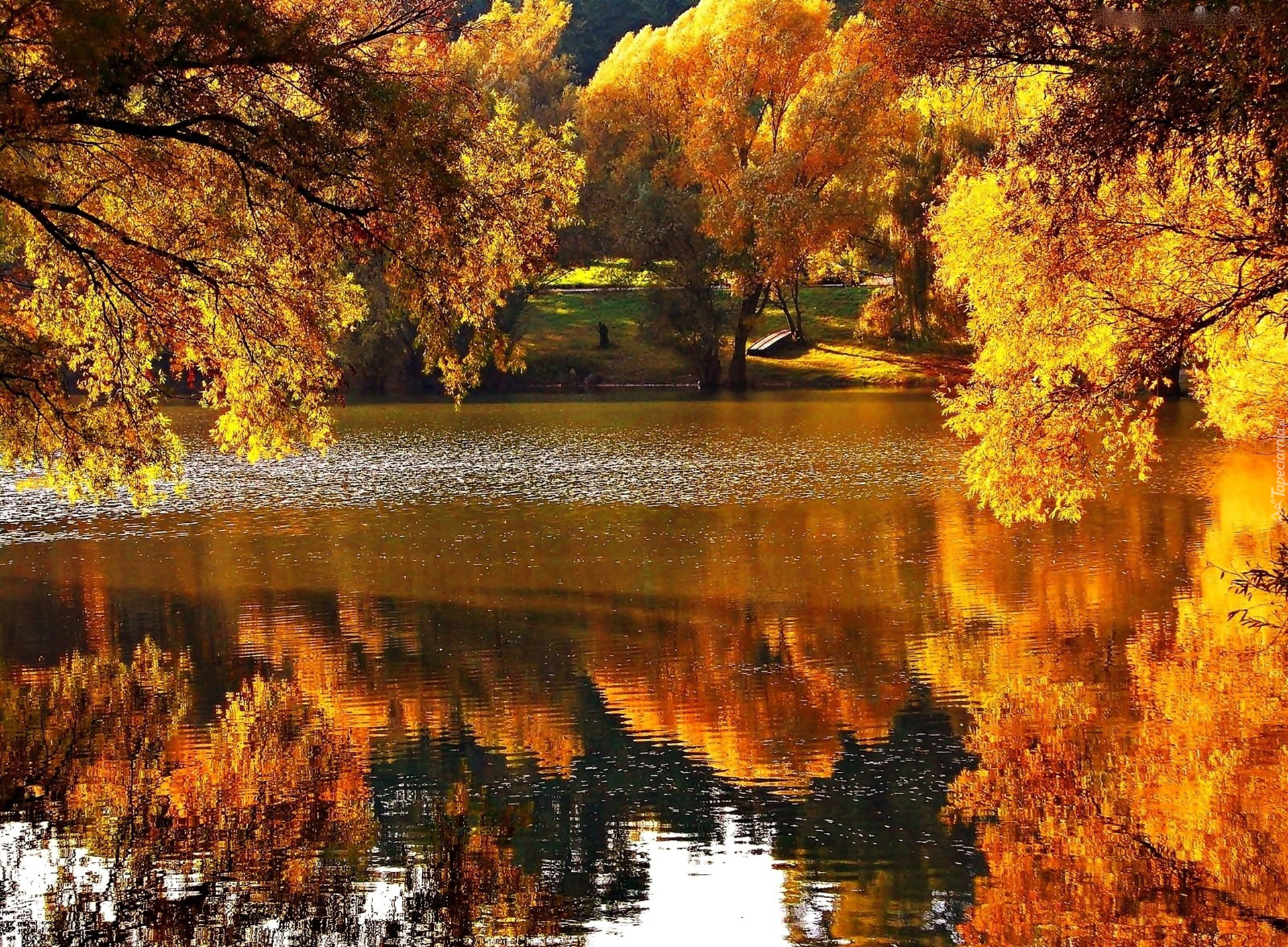Edytor tapety: Żólte, Liście, Drzewa, Woda, Odbicie