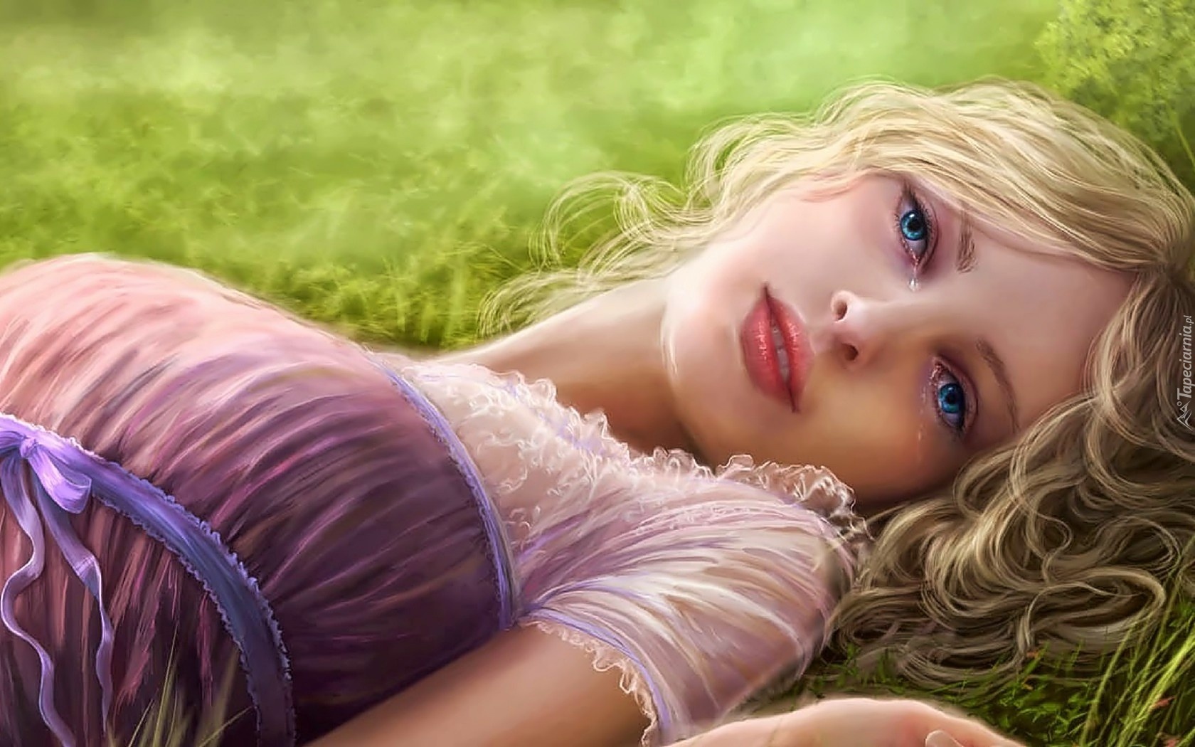 Edytor tapety: Obraz, Dziewczyna, Trawa, Płacz