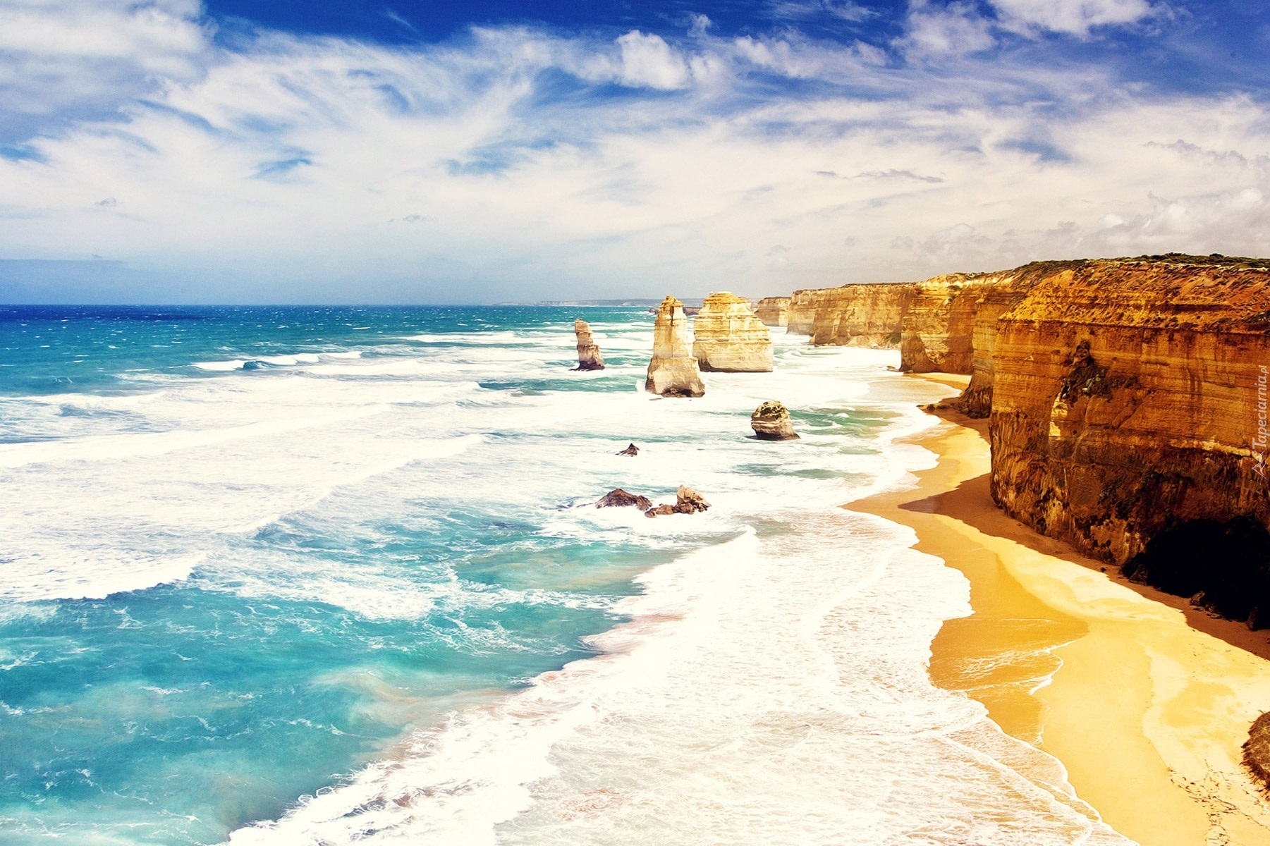 Edytor tapety: Fale, Plaża, Niebo, Skały