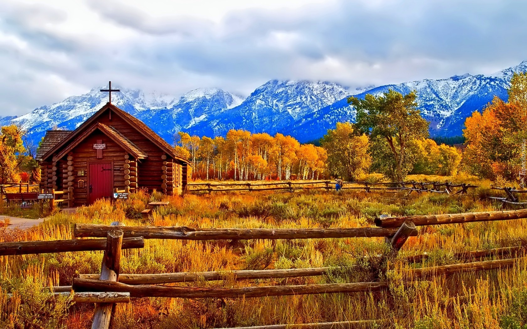 Edytor tapety: Góry, Kościółek, Płot