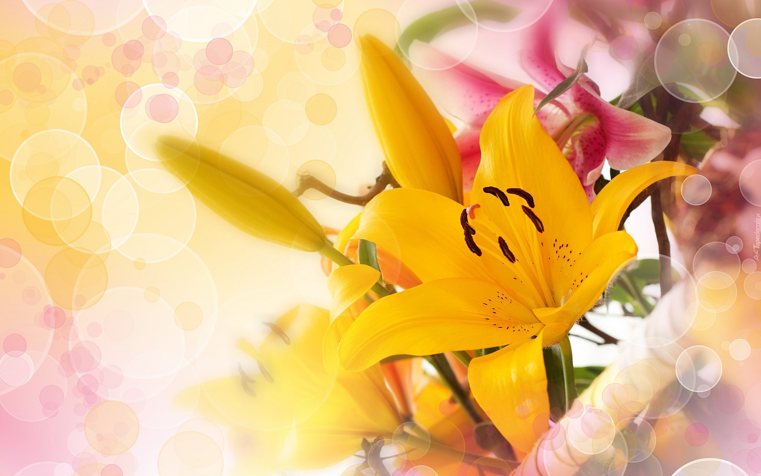 Edytor tapety: Żółta, Lilia, Refleksy, Światła