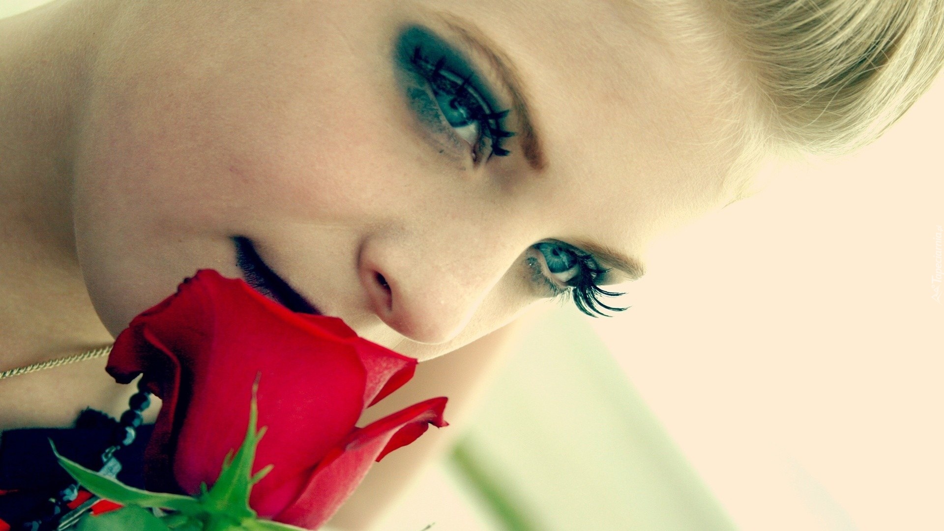 Edytor tapety: Kobieta, Makijaż, Czerwona, Róża