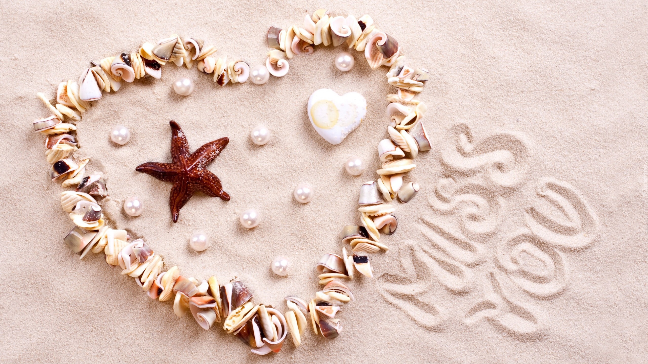 Edytor tapety: Muszelki, Piasek, Serce, Napis
