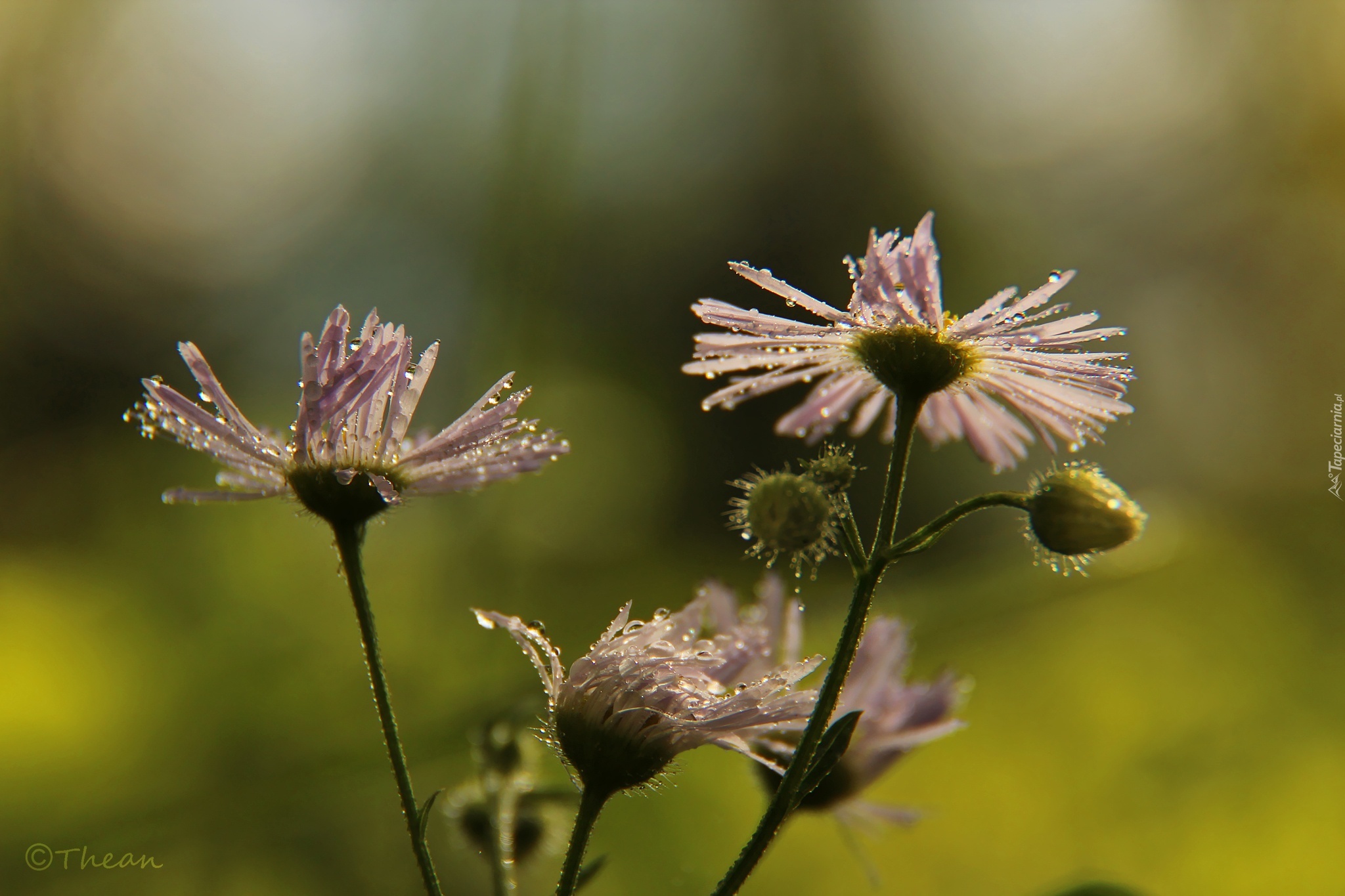 Edytor tapety: Fioletowe, Kwiaty, Krople, Deszczu