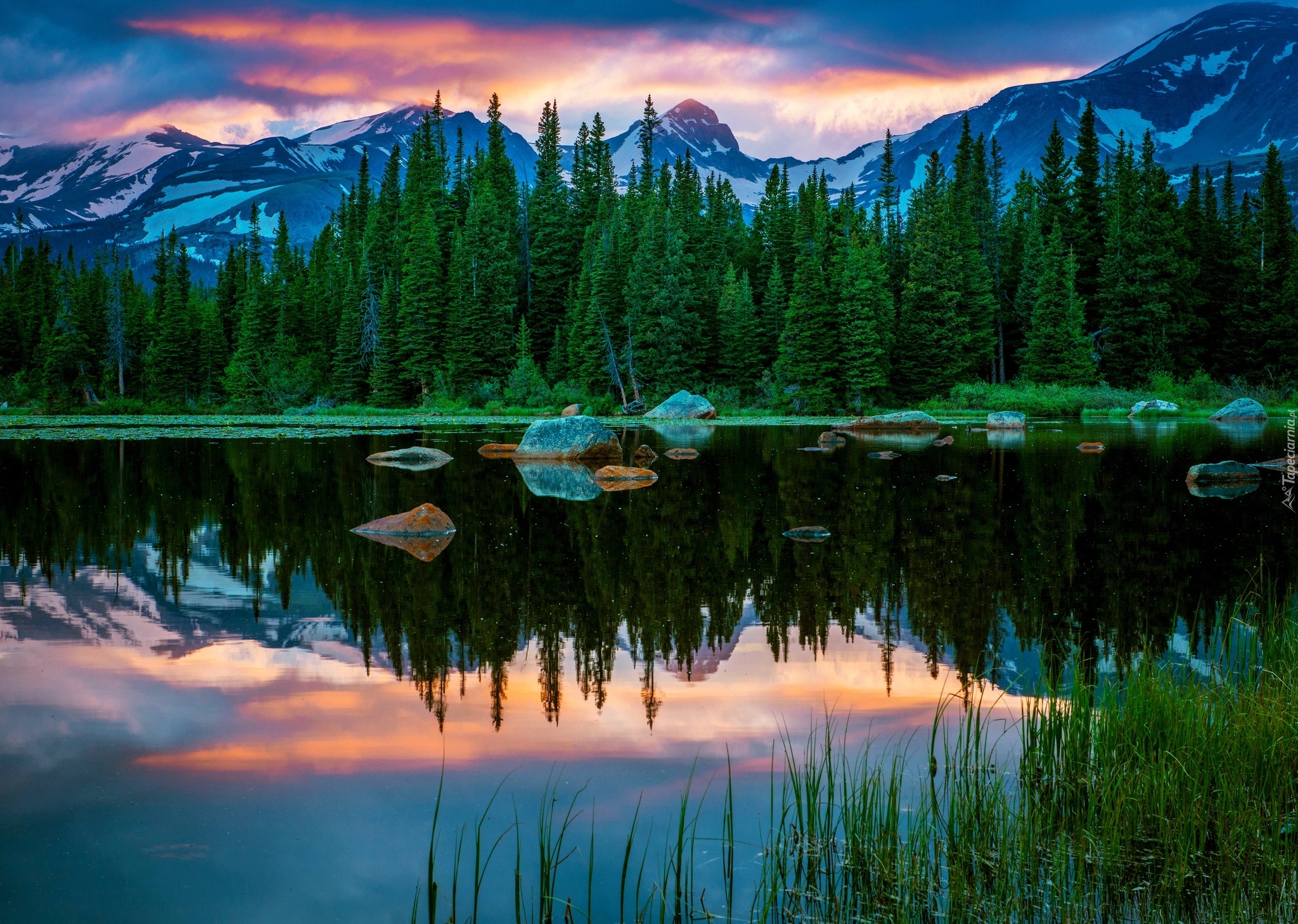 Edytor tapety: Jezioro, Las, Góry, Odbicie