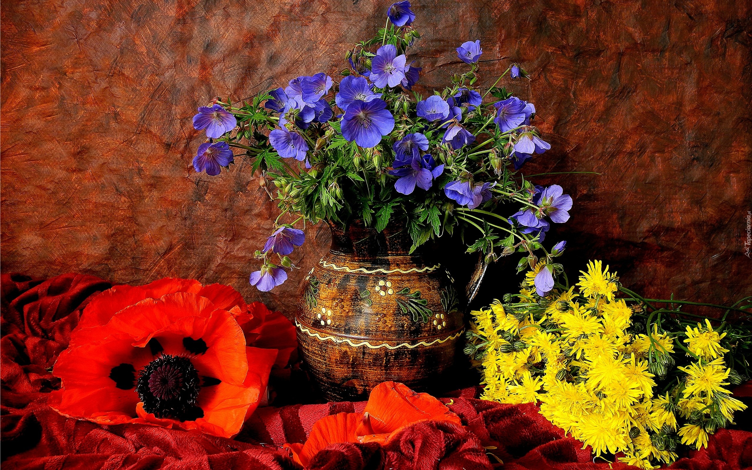 Edytor tapety: Bukiety, Kwiatów, Maki, Wazon, Kompozycja