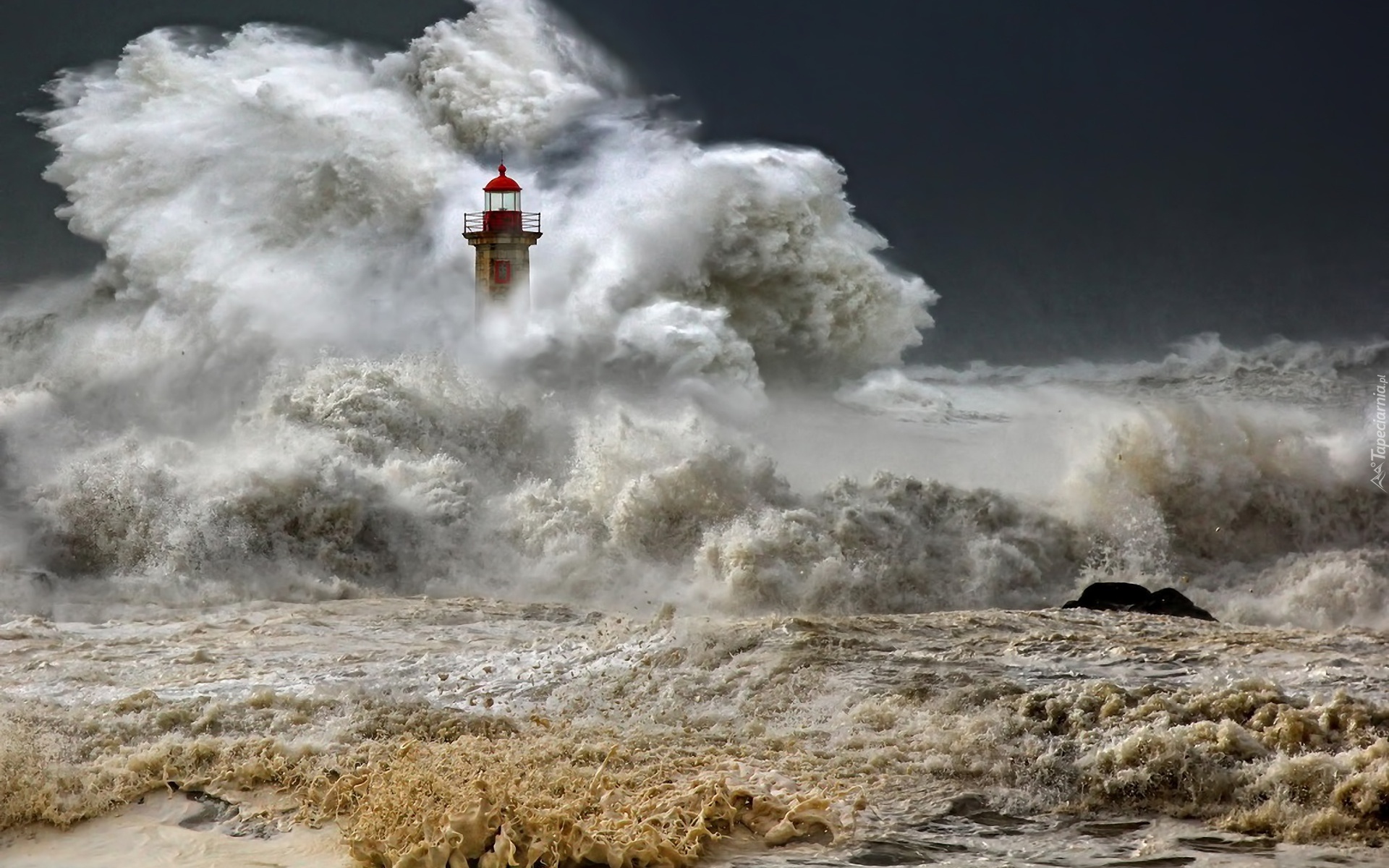 Edytor tapety: Latarnia, Morska, Morze, Fale, Sztorm