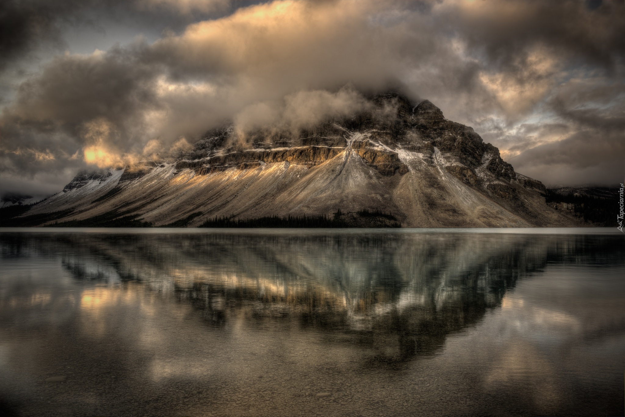 Edytor tapety: Chmury, Skały, Jezioro