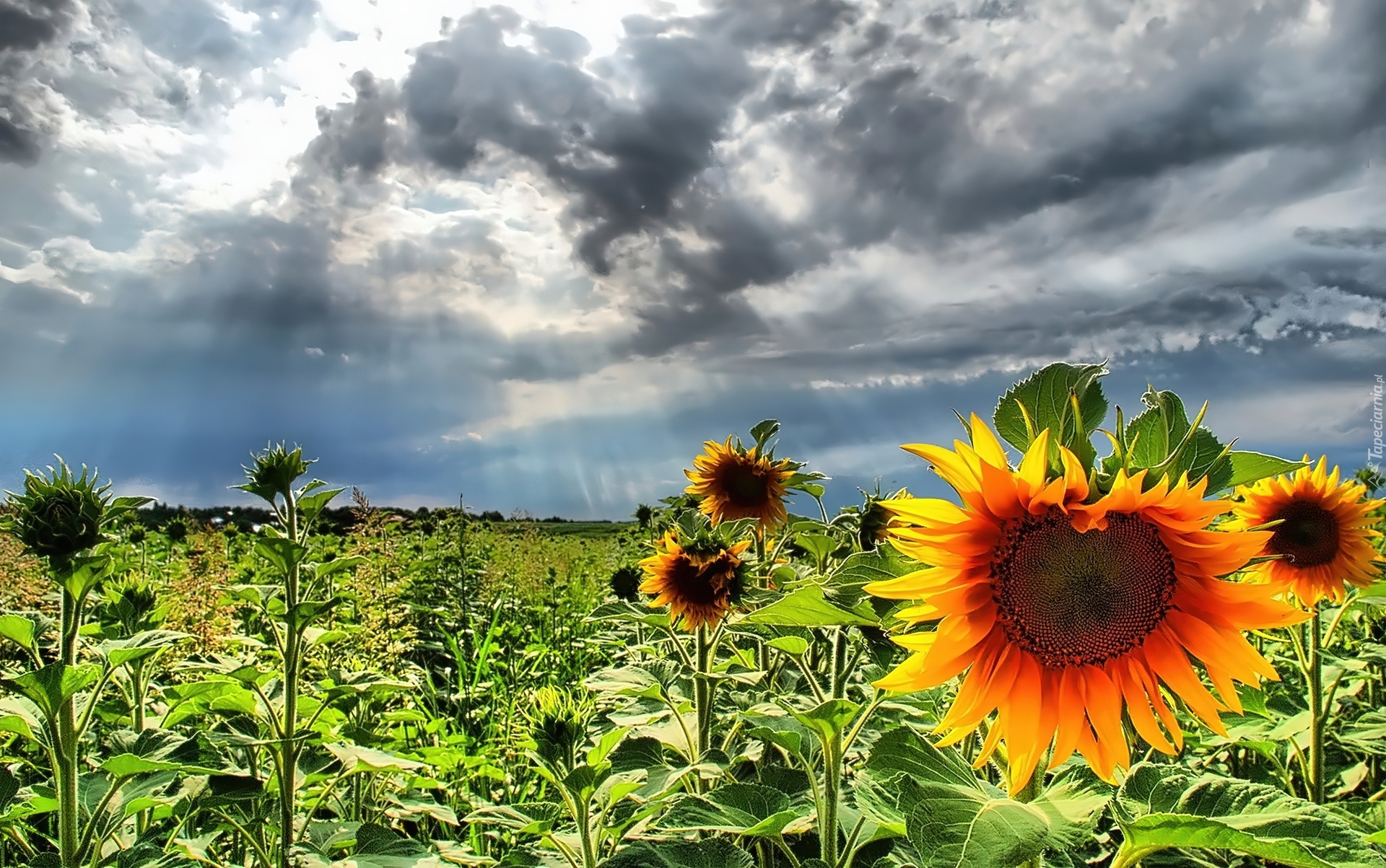 Edytor tapety: Pole, Słoneczników, Chmury