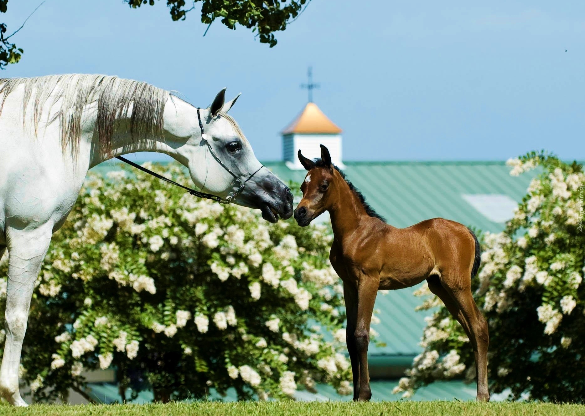 Edytor tapety: Klacz, Źrebak, Krzewy