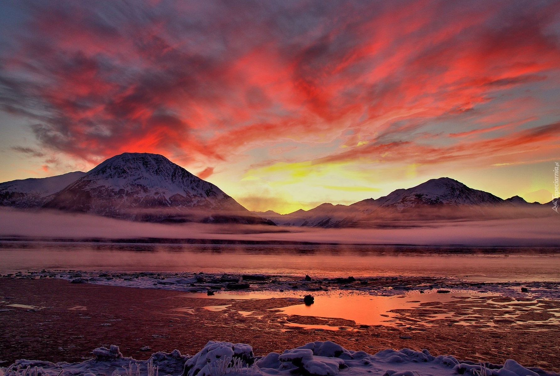 Edytor tapety: Góry, Chmury, Woda, Zachód, Słońca