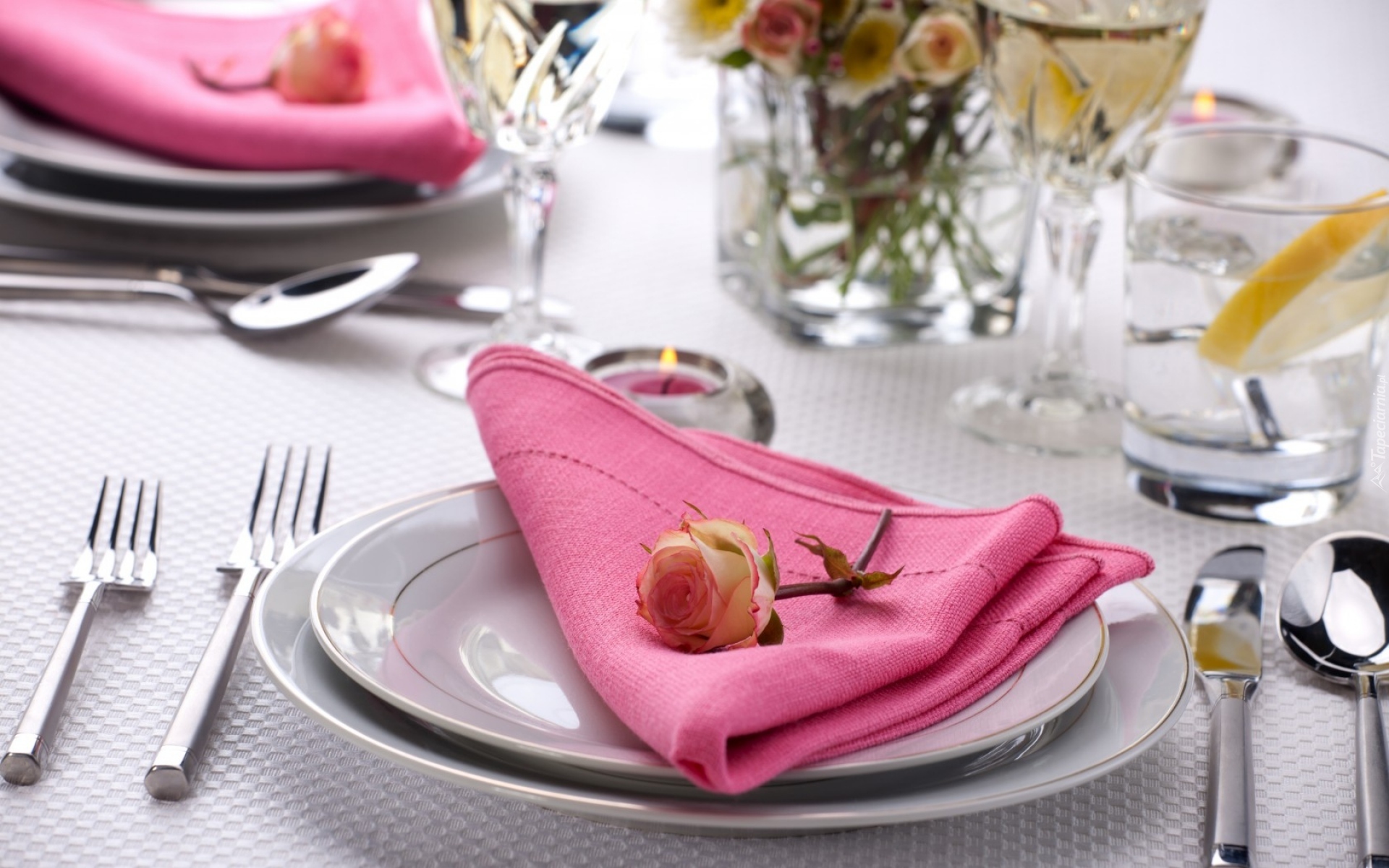 Edytor tapety: Zastawa, Stołowa, Serwetki, Róże, Szkło