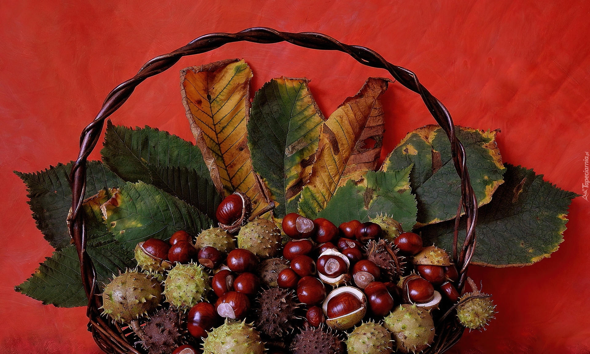 Edytor tapety: Jesień, Wiklinowy, Kosz, Kasztany, Liście