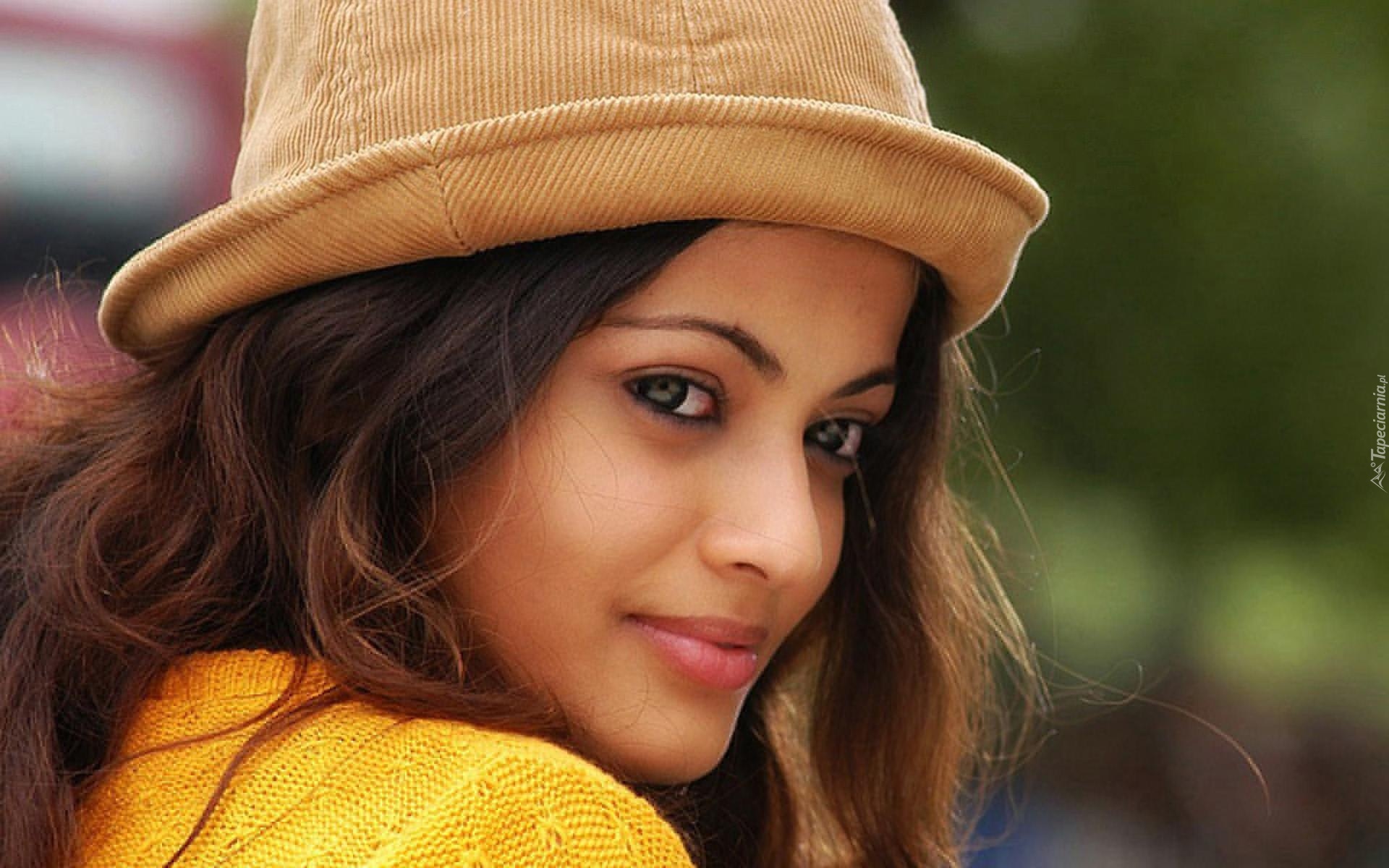 Edytor tapety: Sneha Ullal, Usmiech, Kapelusik