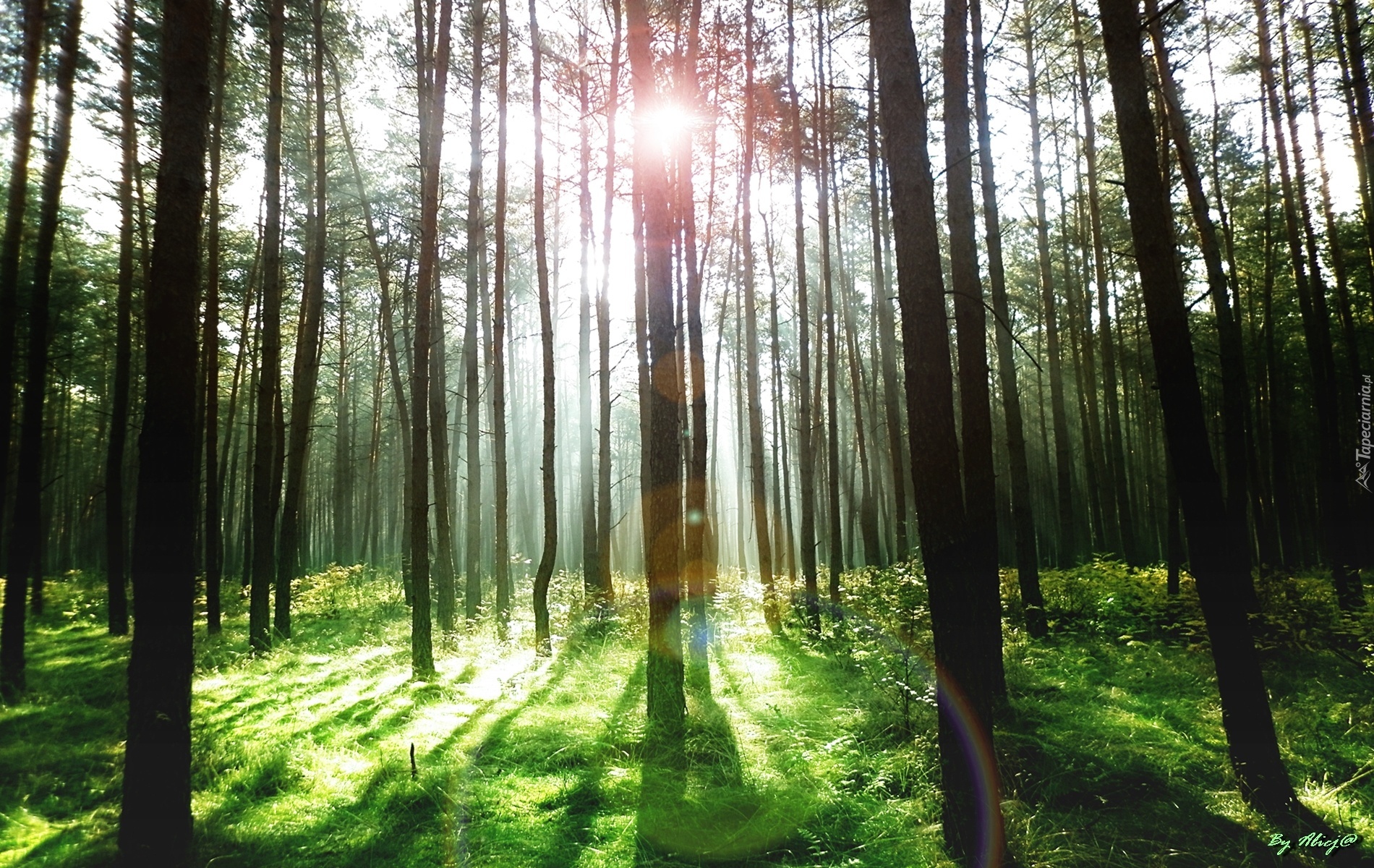 Edytor tapety: Las, Promienie, Słońca