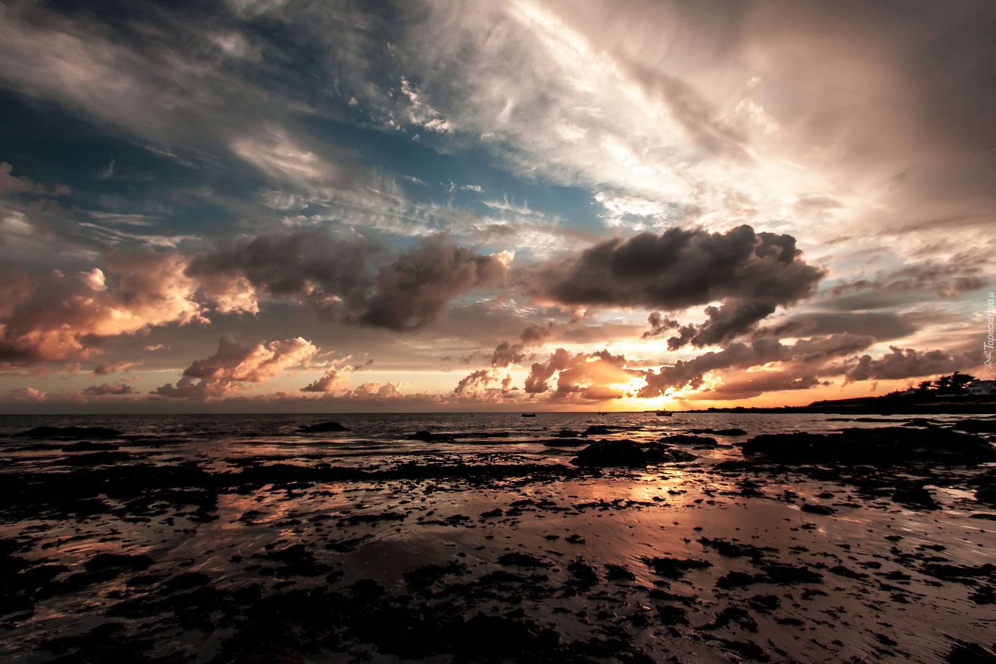 Edytor tapety: Zachód, Słońca, Chmury, Morze
