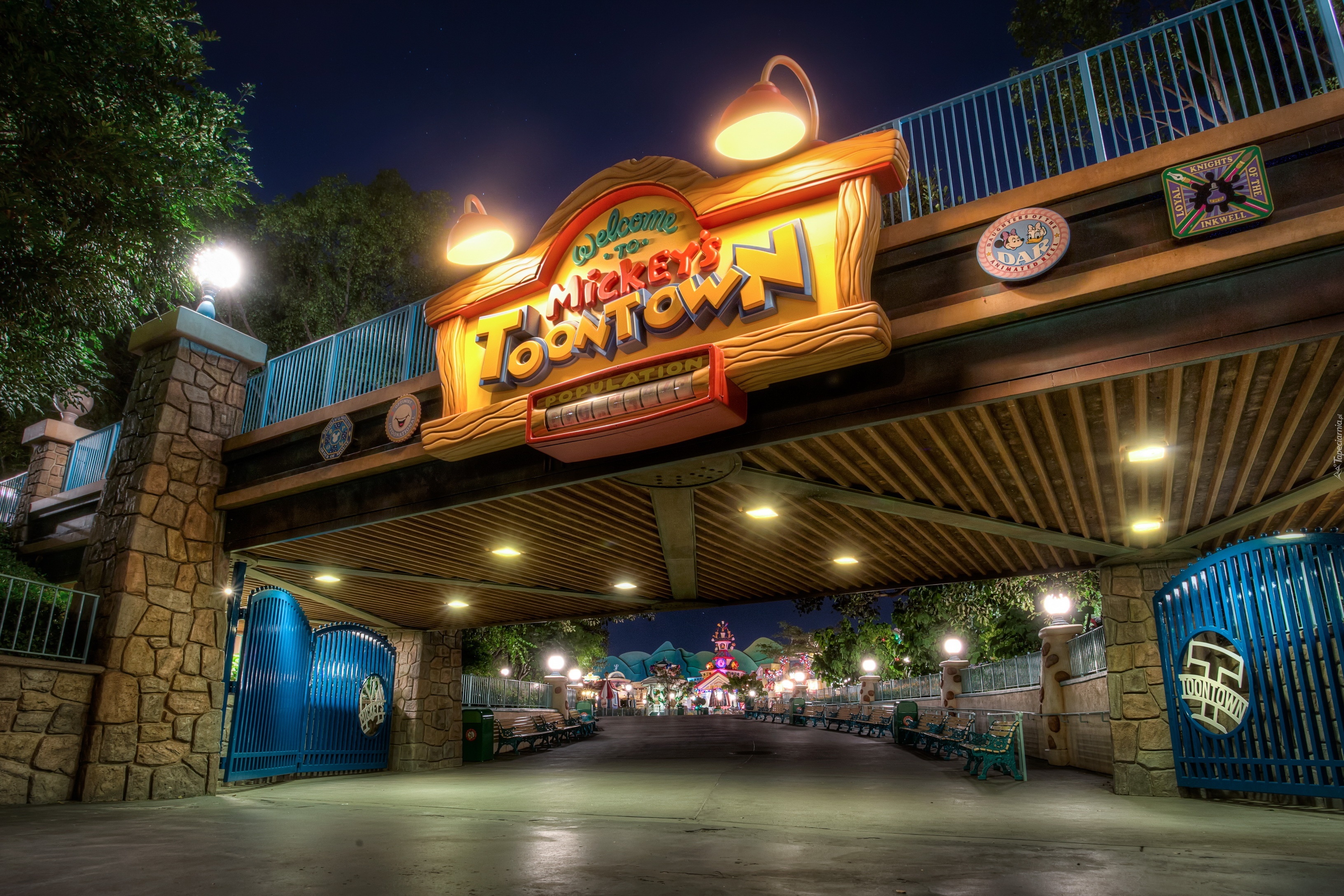 Edytor tapety: Ulica, Most, Neon, Disneyland, Kalifornia, USA