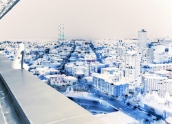 Edytor tapety: Miasto, Oświetlone, Nocą, Dach, Dziewczyna