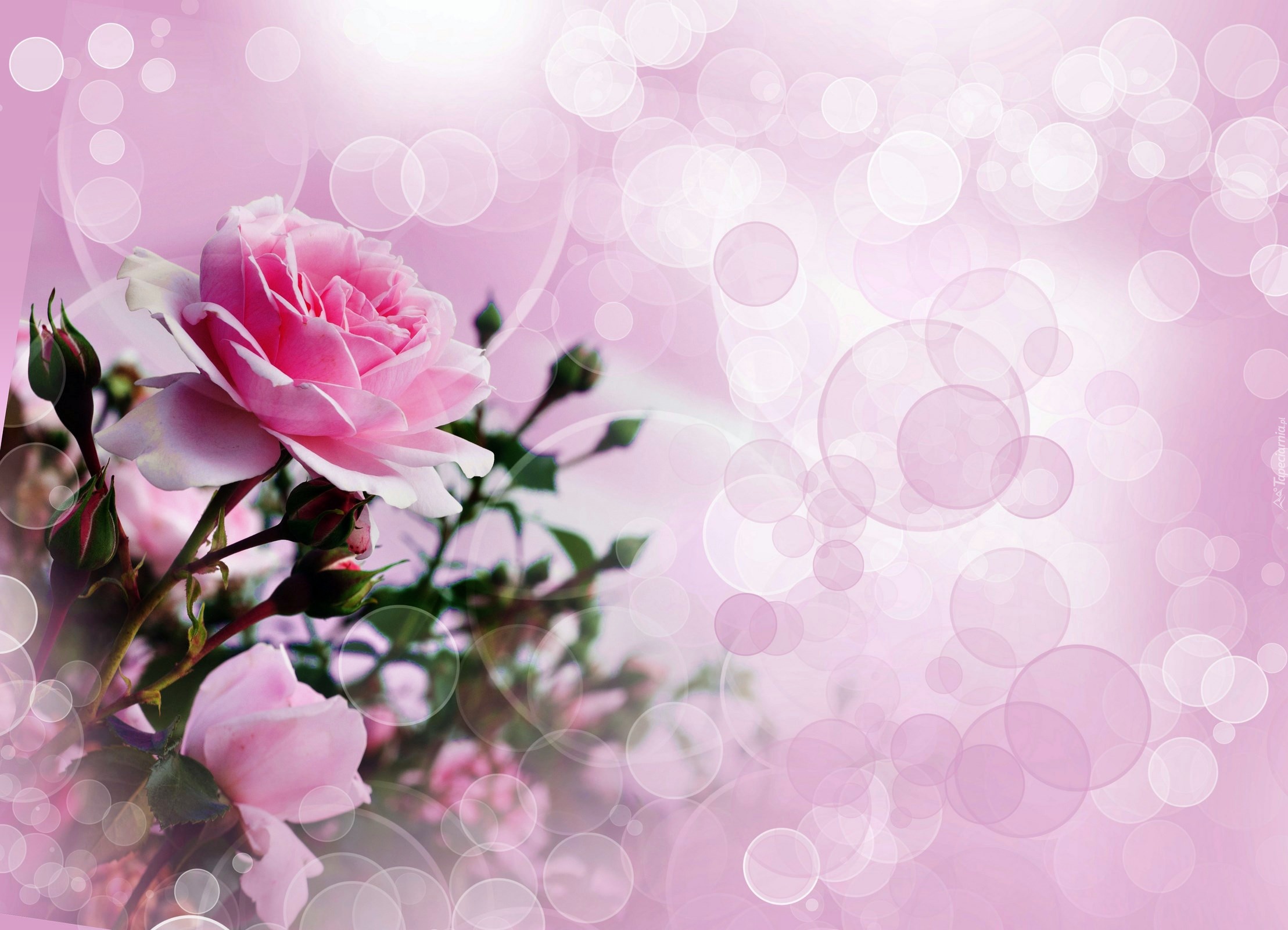 Edytor tapety: Różowe, Róże, Bukiet, Refleksy, Światła