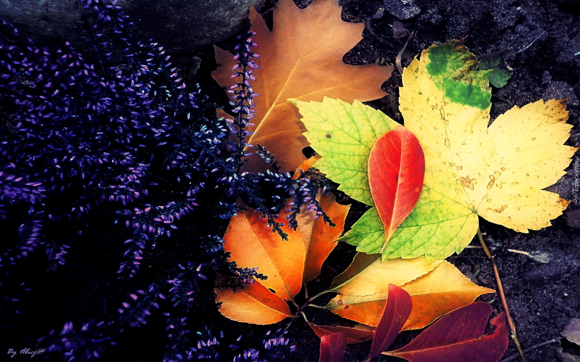 Edytor tapety: Jesienne, LIście, Fioletowy, Wrzosiec