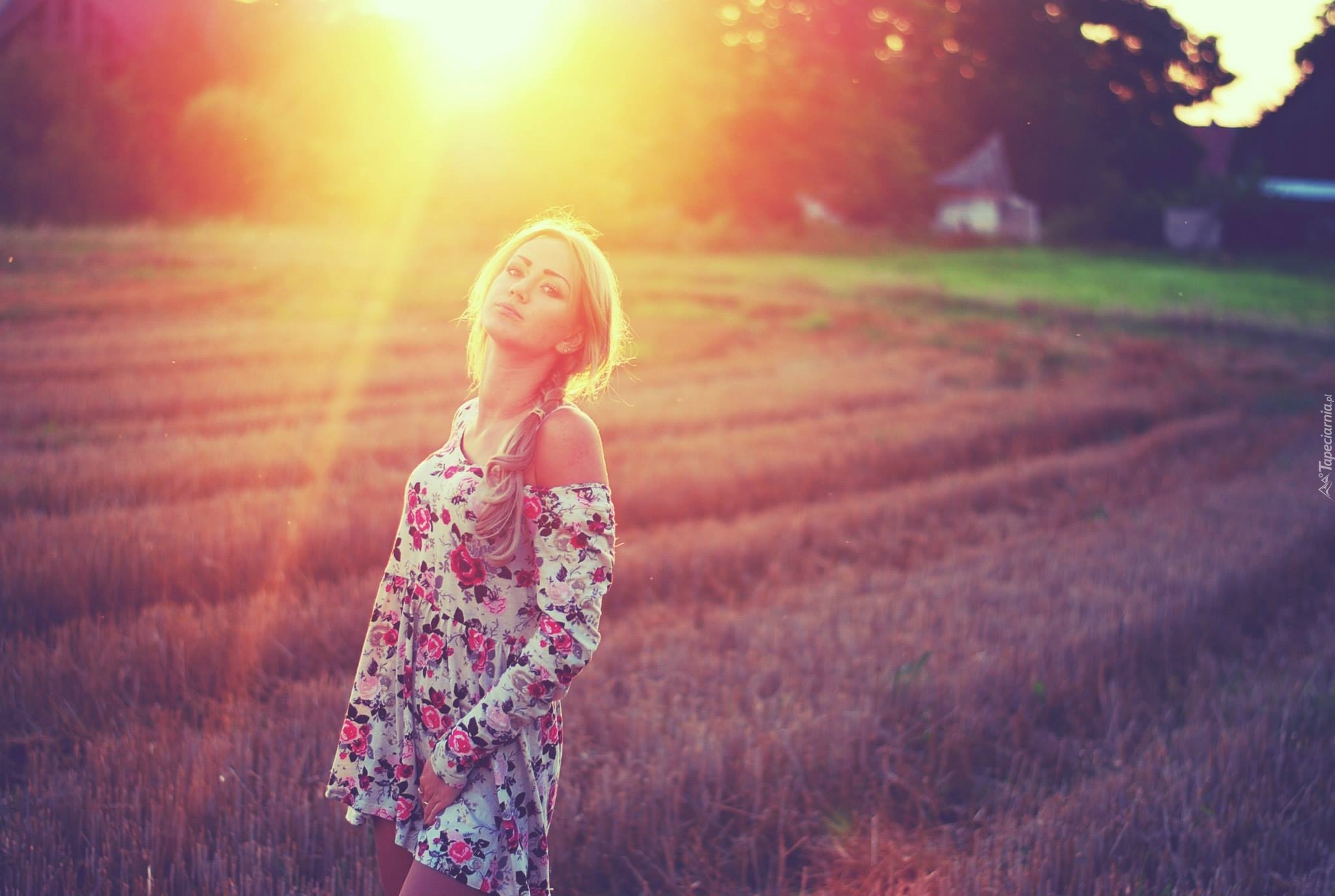 Edytor tapety: Kobieta, Blondynka, Sukienka, Pole, Lawenda wąskolistna