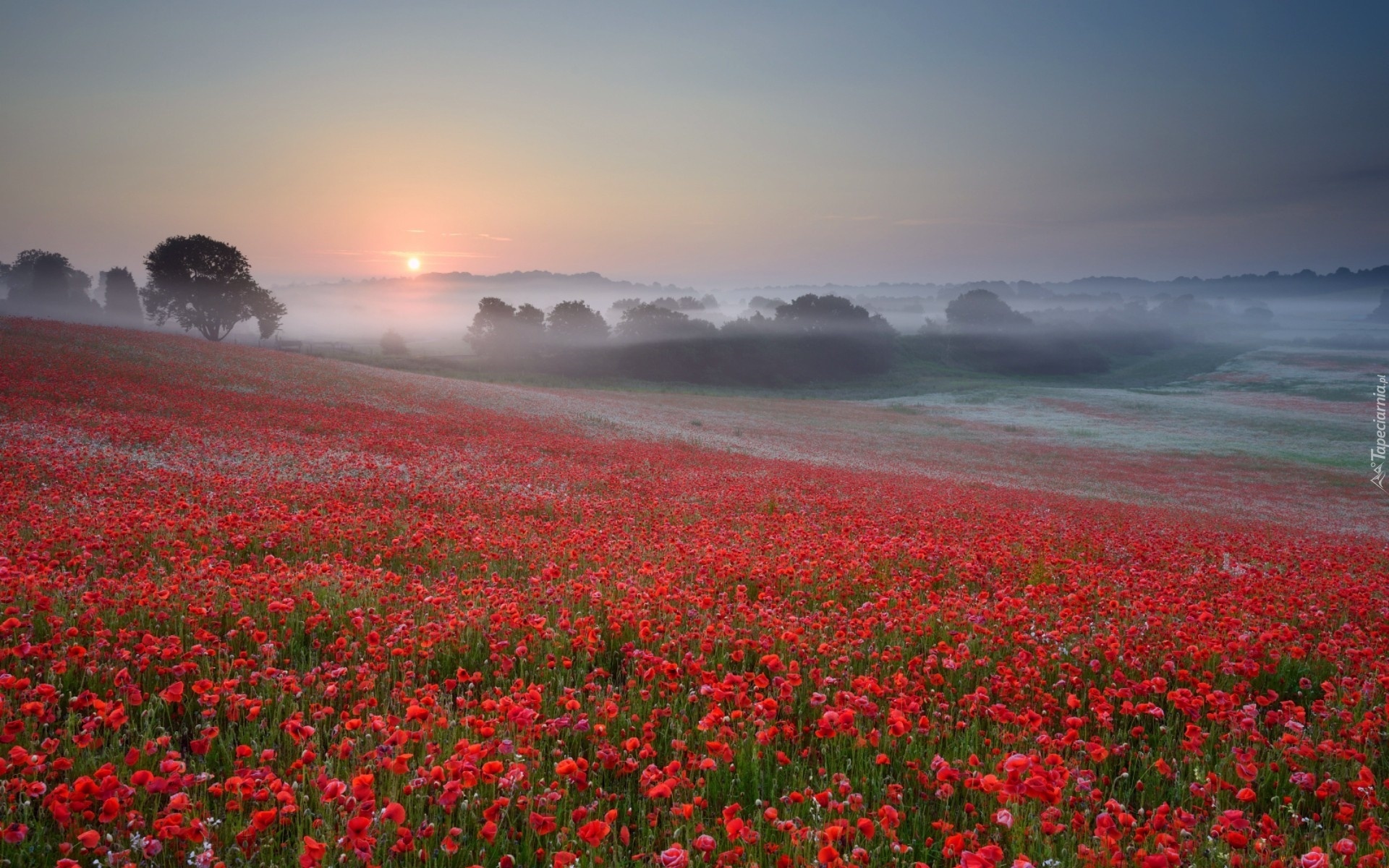 Edytor tapety: Maki, Mgła, Łąka