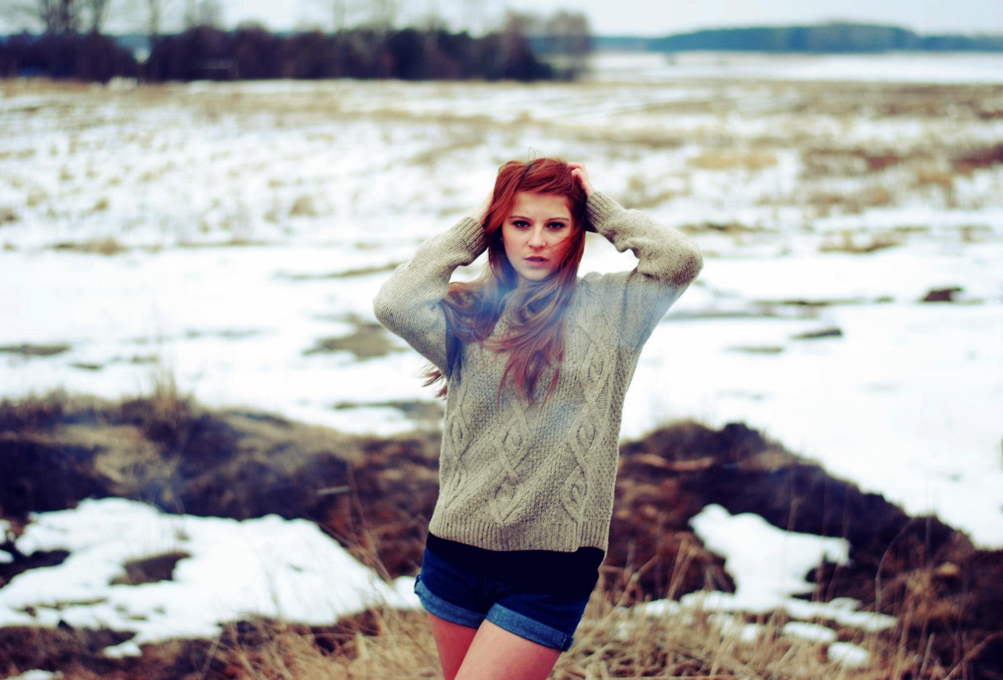 Edytor tapety: Ruda, Kobieta, Sweter, Szorty