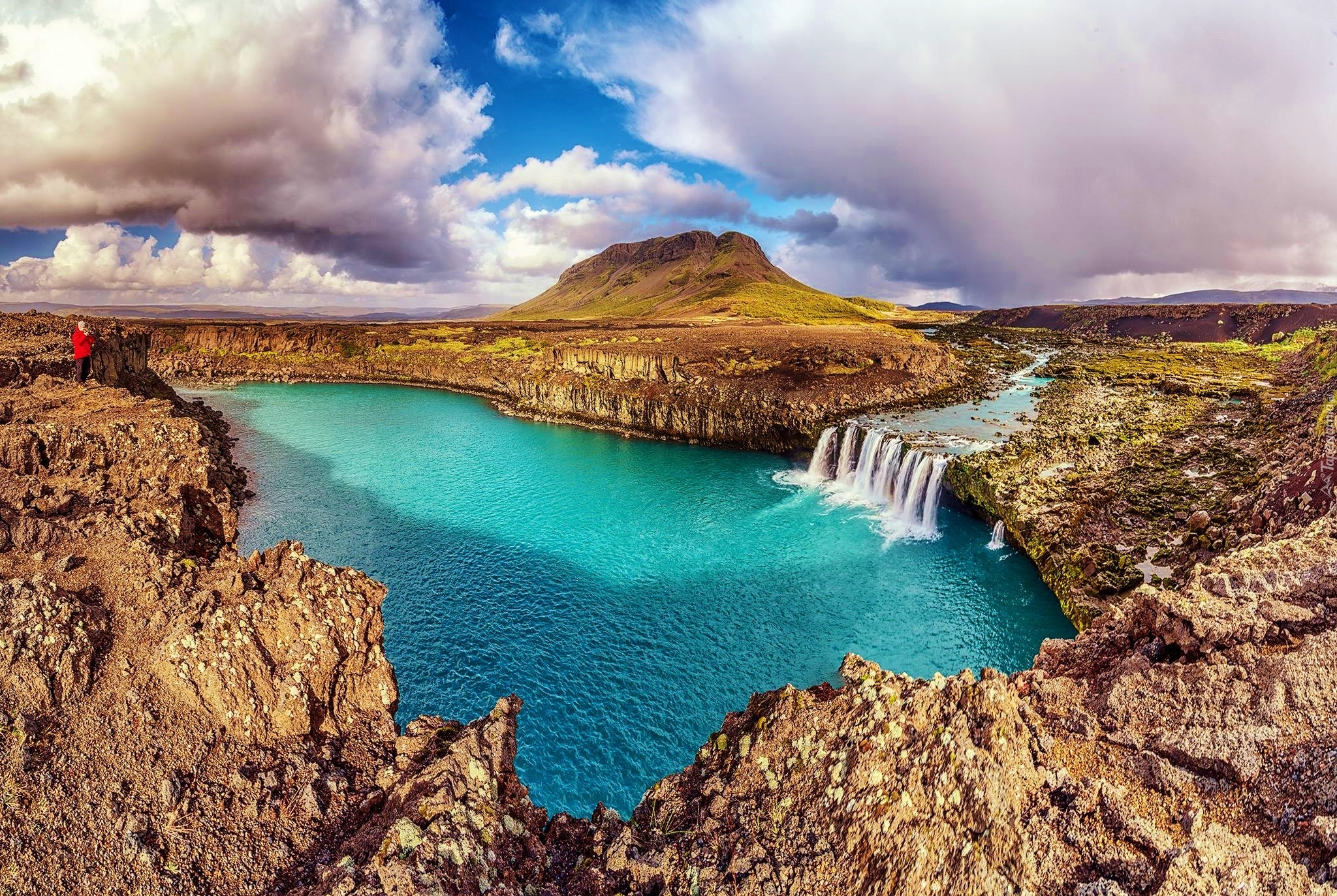 Edytor tapety: Wodospad, Rzeka, Skały, Niebo