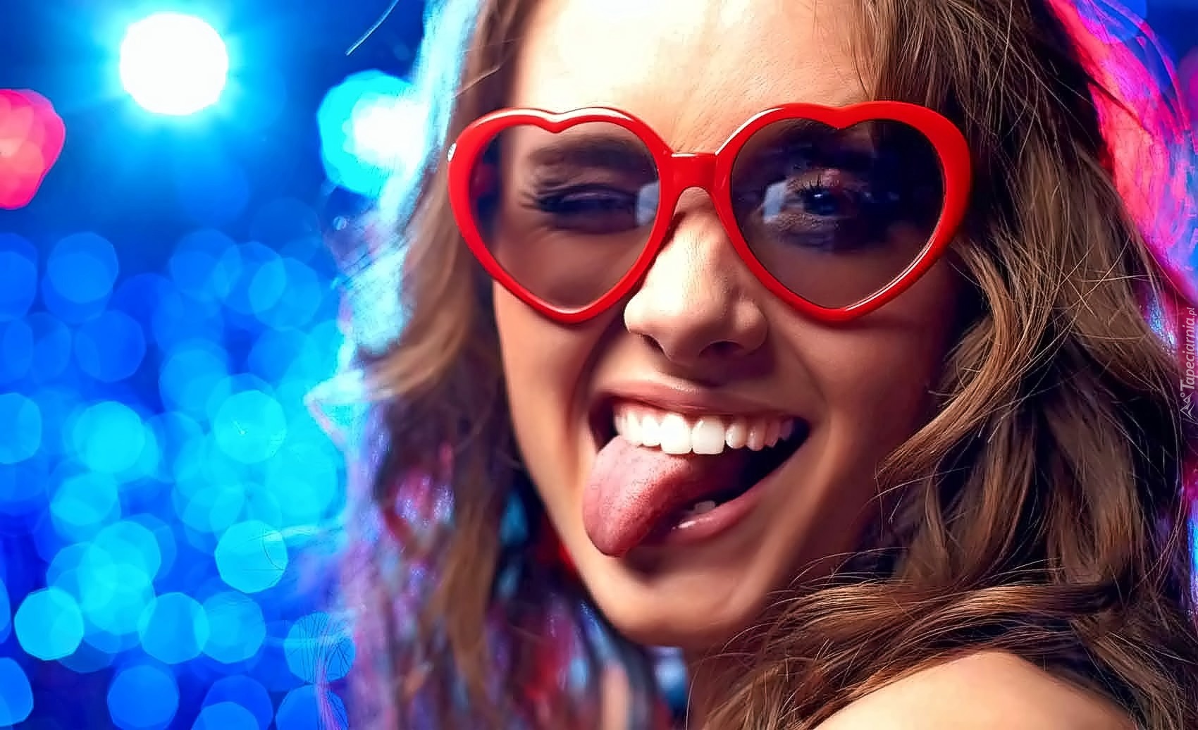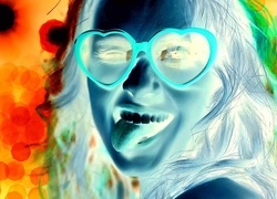 Edytor tapety: Uśmiechnięta, Dziewczyna, Okulary, Język