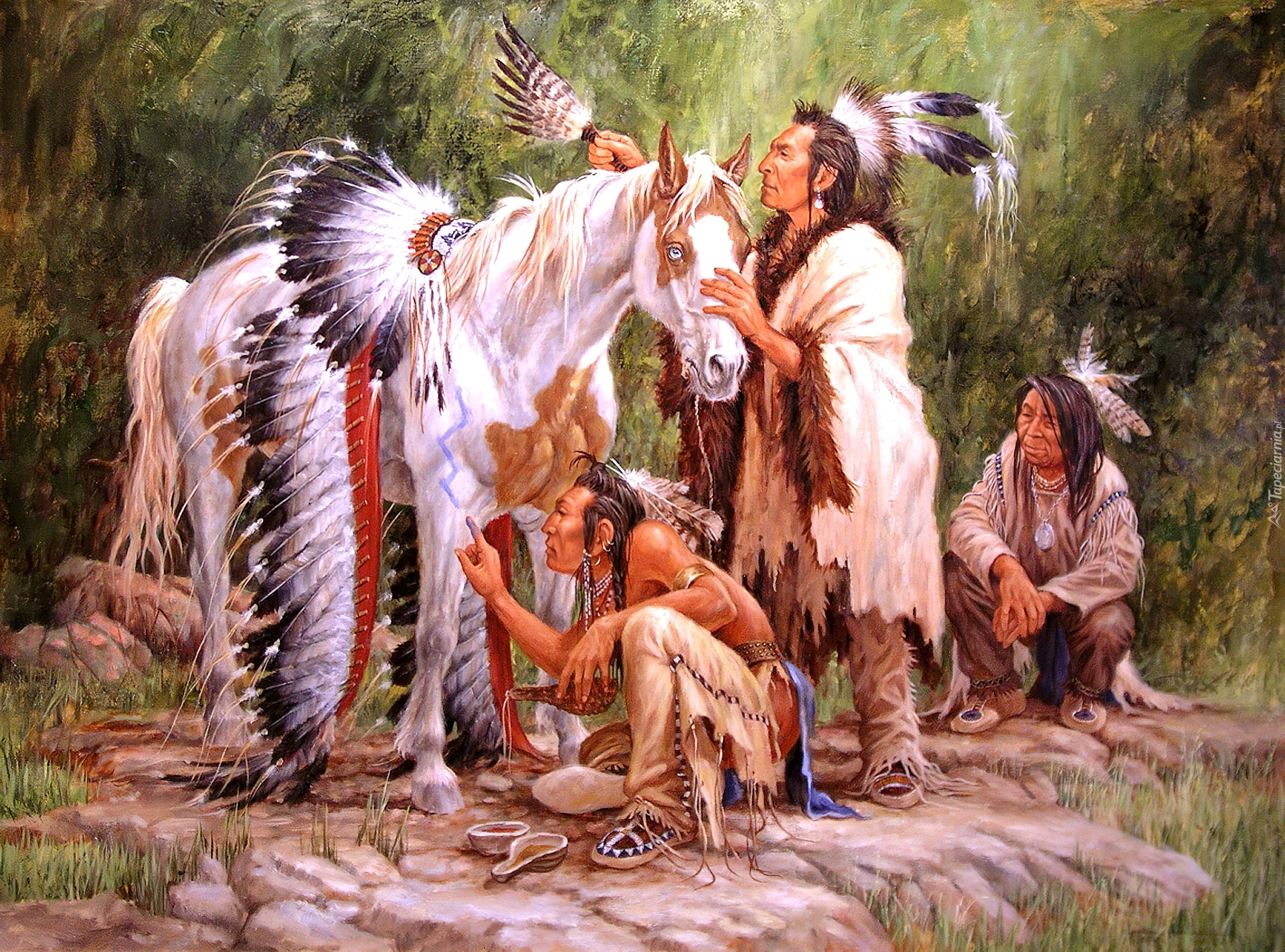Edytor tapety: Obraz, Larry Fanning, Indianie, Koń, Pióropusz