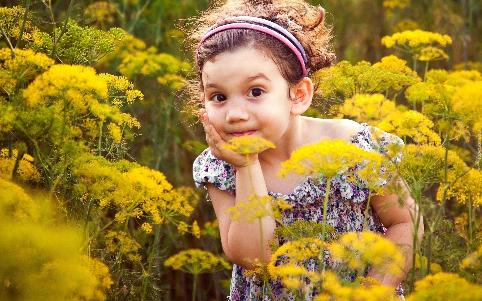 Edytor tapety: Mała, Dziewczynka, Łąka, Polne, Kwiaty