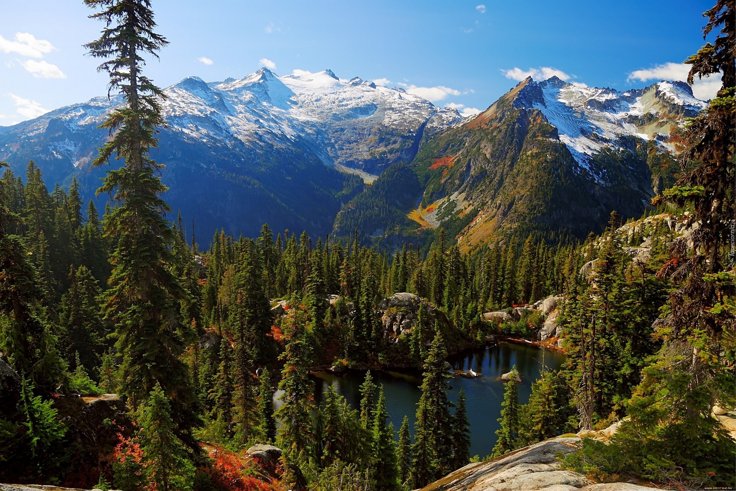 Edytor tapety: Góry, Lasy, Jezioro