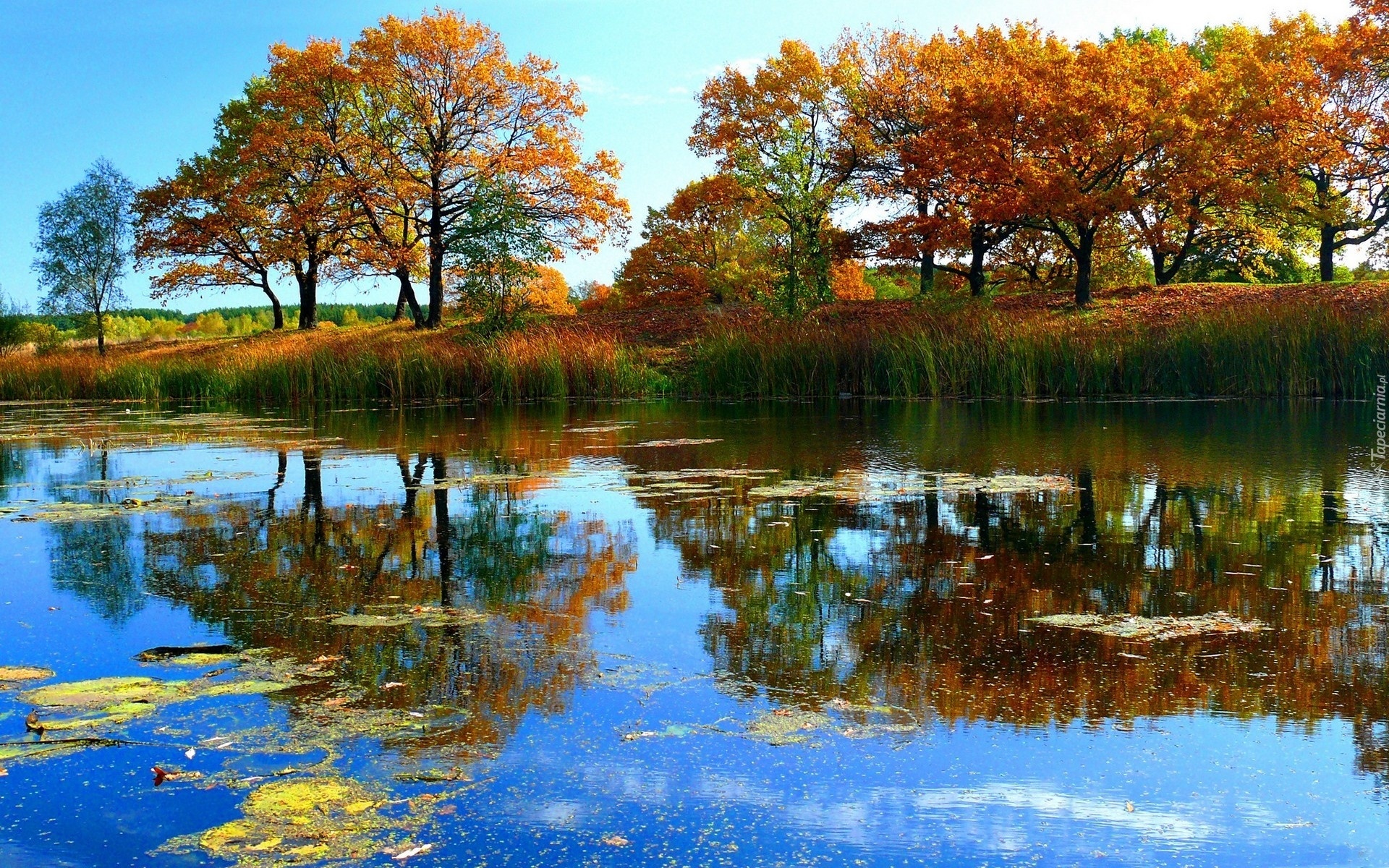 Edytor tapety: Jezioro, Drzewa, Odbicie
