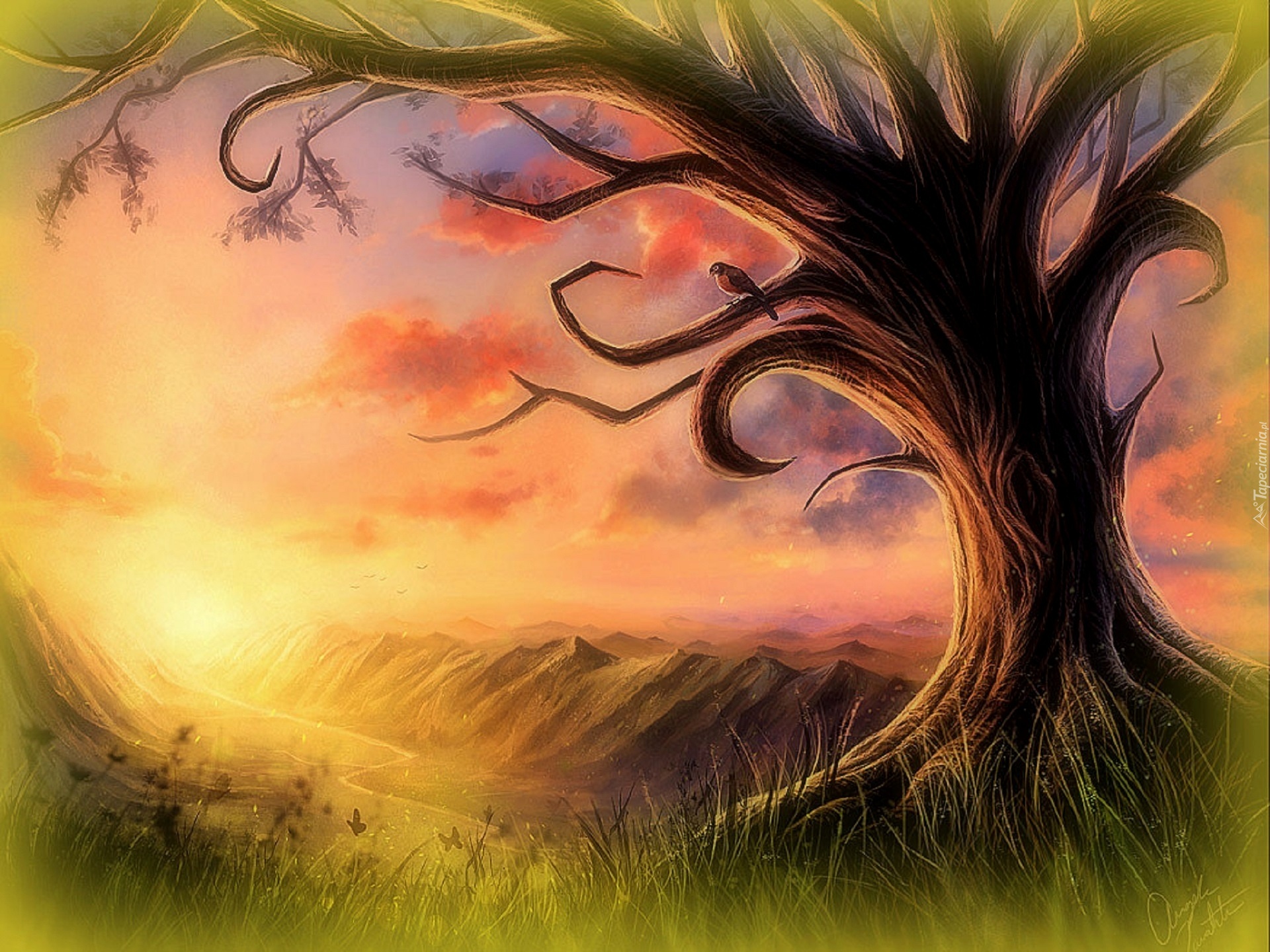 Edytor tapety: Drzewo, Trawa, Niebo
