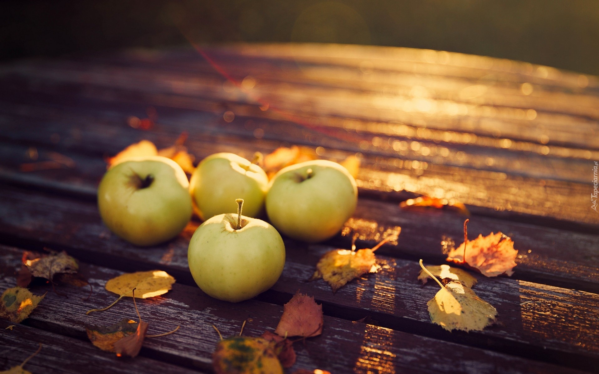 Edytor tapety: Jabłka, Liście, Ławka, Jesień