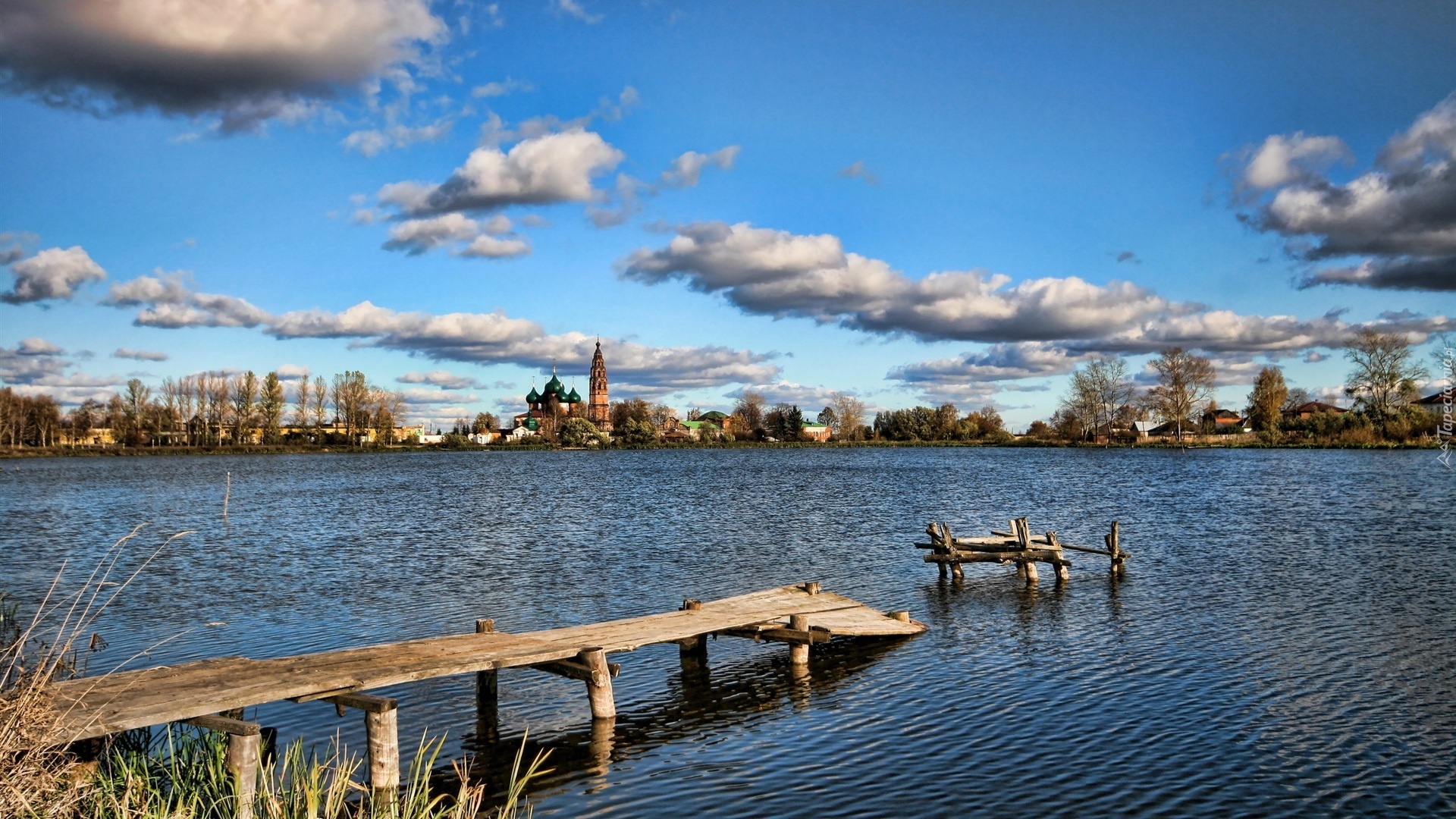 Edytor tapety: Kościół, Rzeka, Pomost
