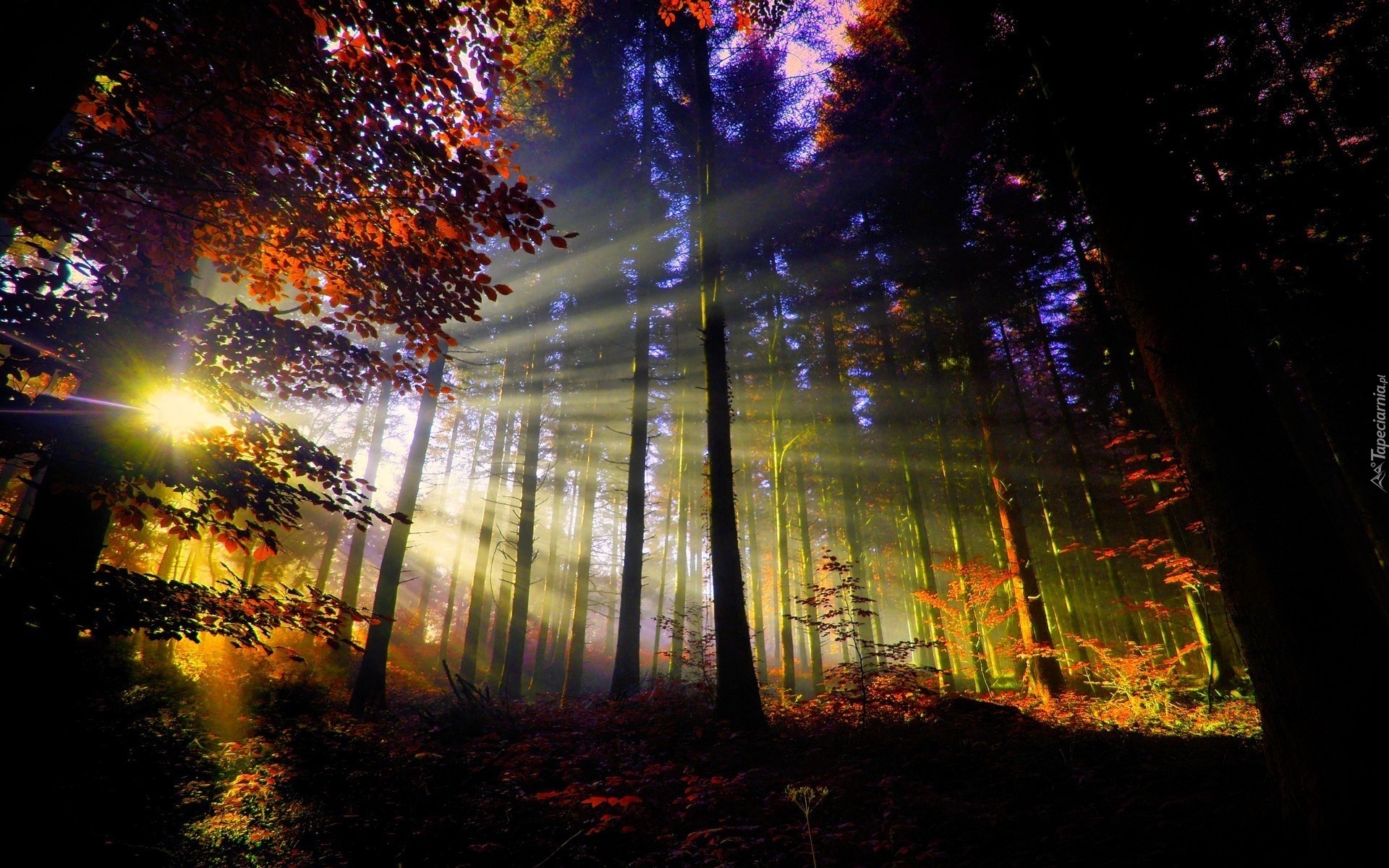 Edytor tapety: Las, Promienie, Słońca