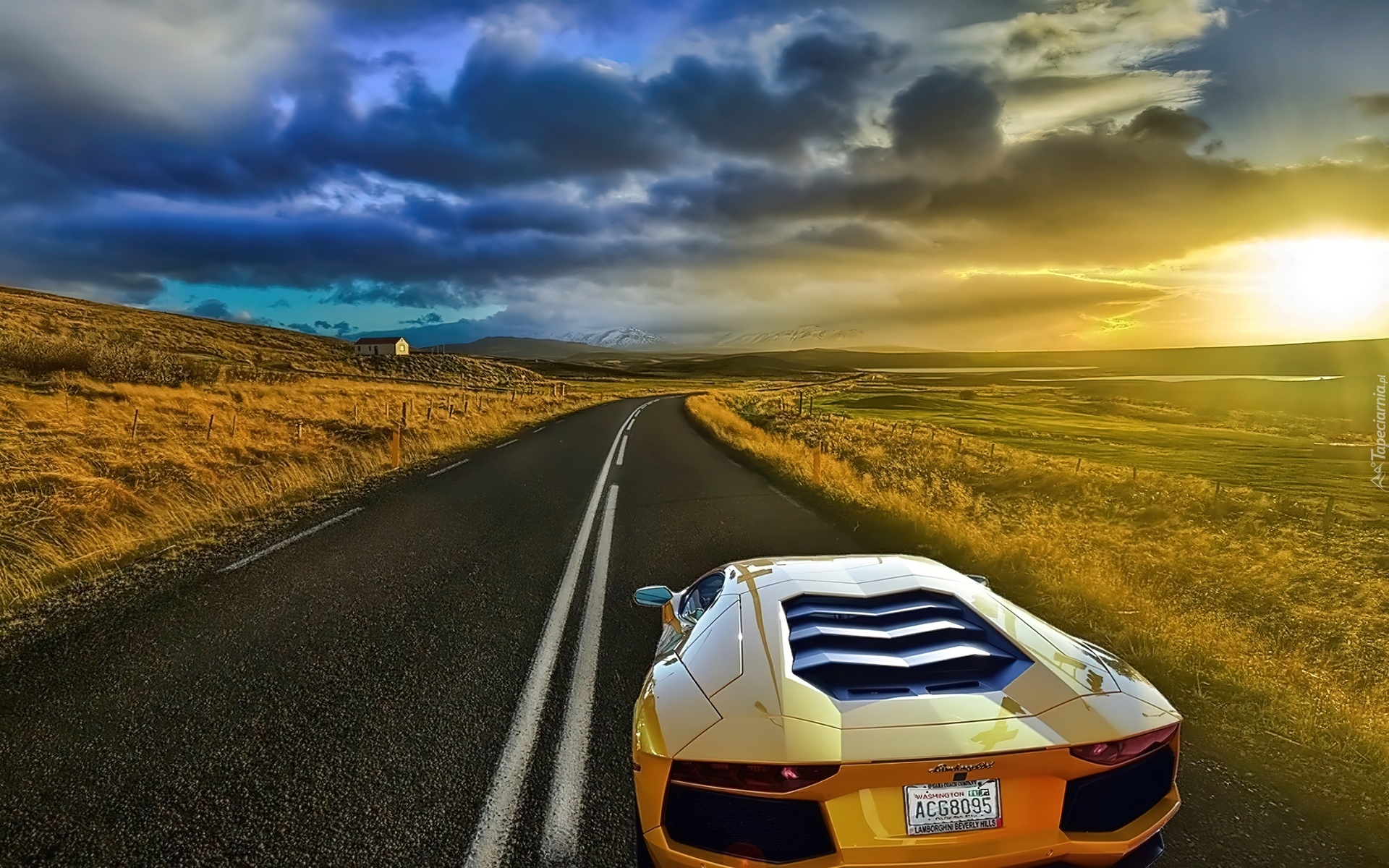 Edytor tapety: Lamborghini, Aventador, Droga, Niebo