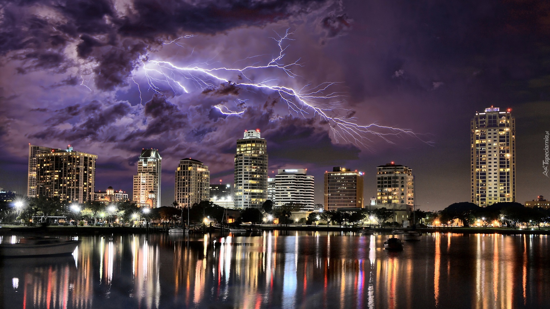 Edytor tapety: Miasto, Noc, Błyskawica