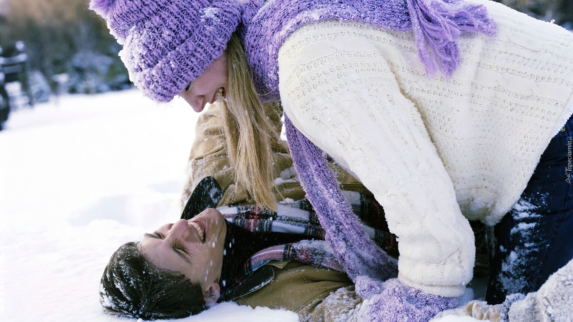 Edytor tapety: Para, Zima, Śnieg, Miłość, Zabawa