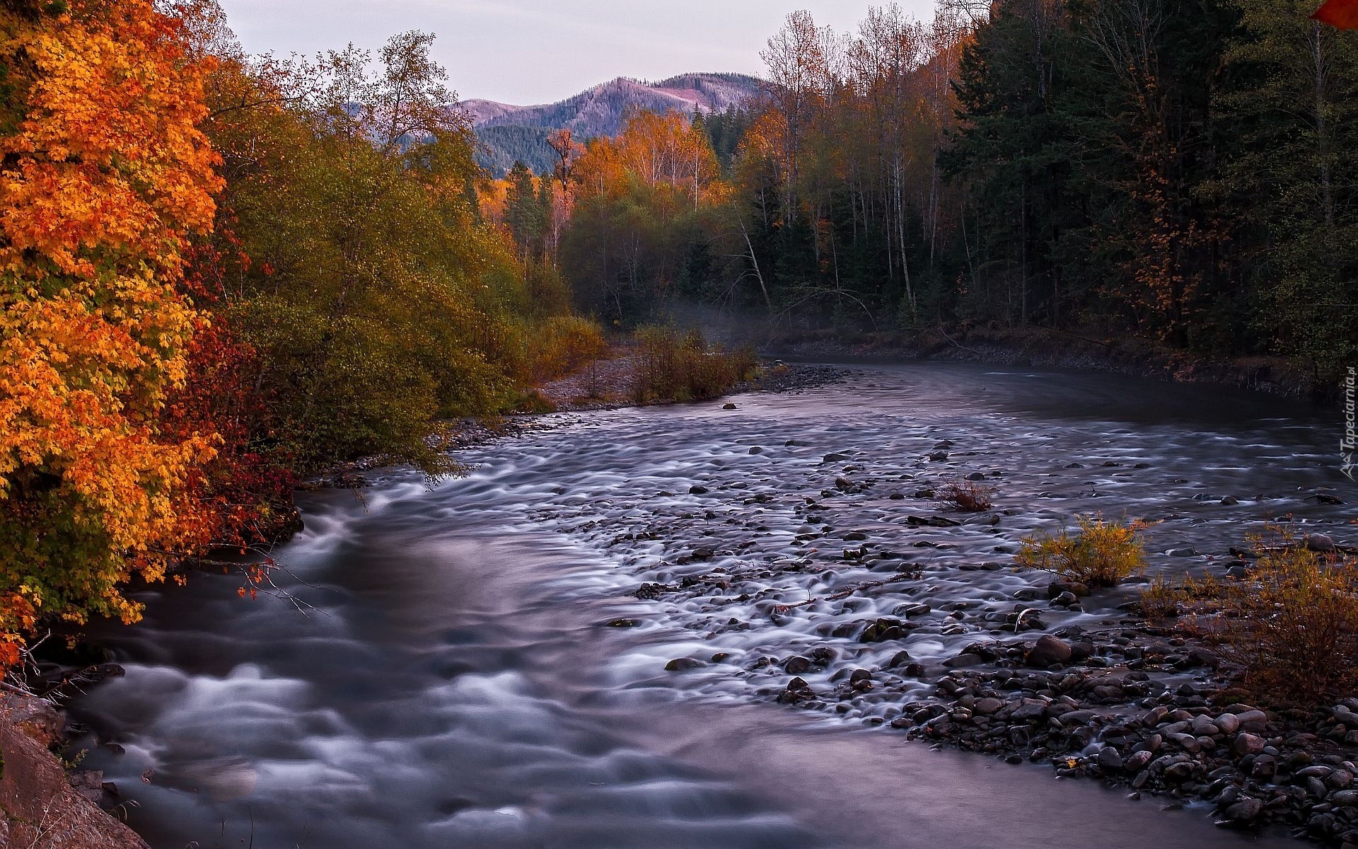 Edytor tapety: Rzeka, Lasy, Góry, Jesień